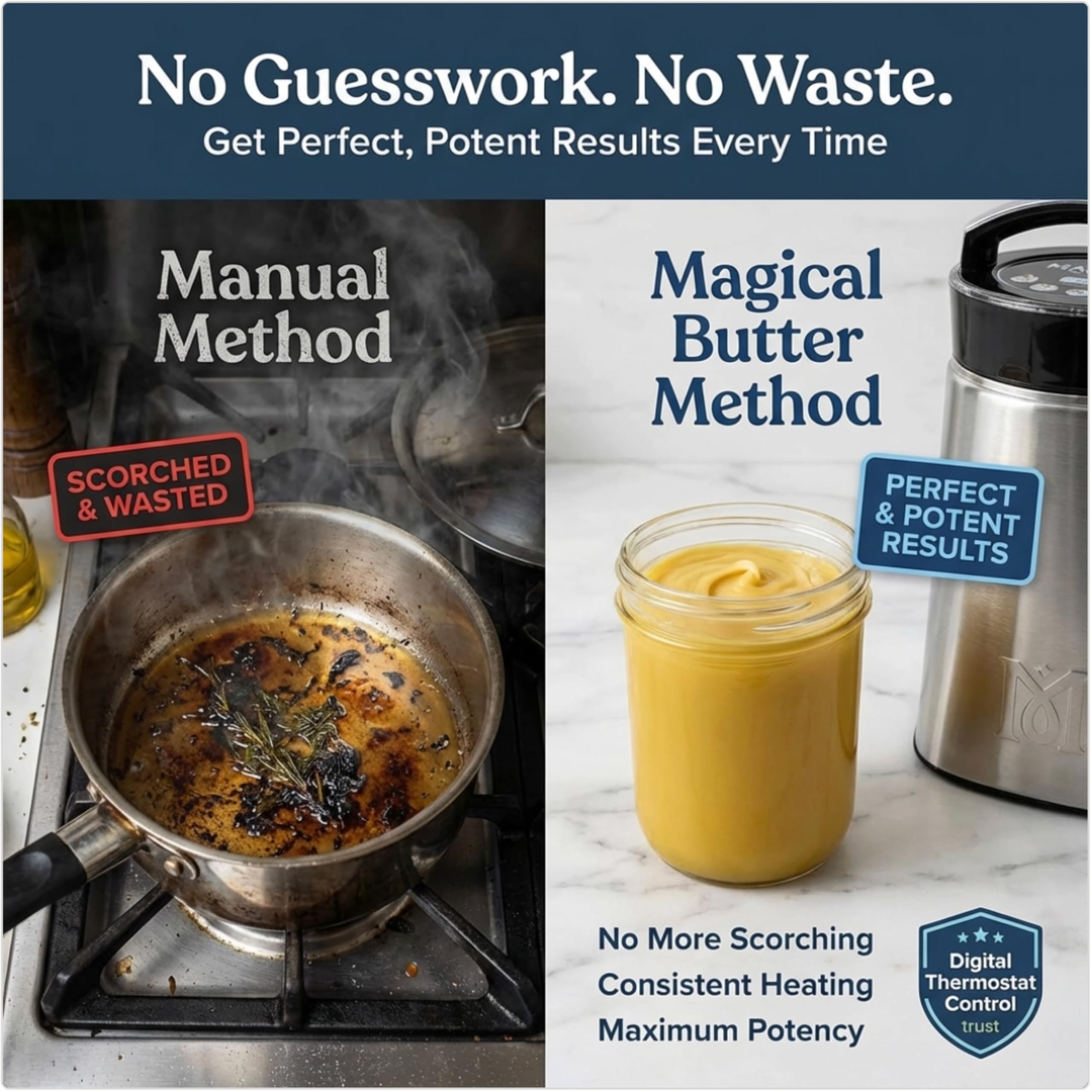 Precision Decarboxylation – DecarBox with integrated digital thermometer ensures accurate heating for consistent ingredient preparation.