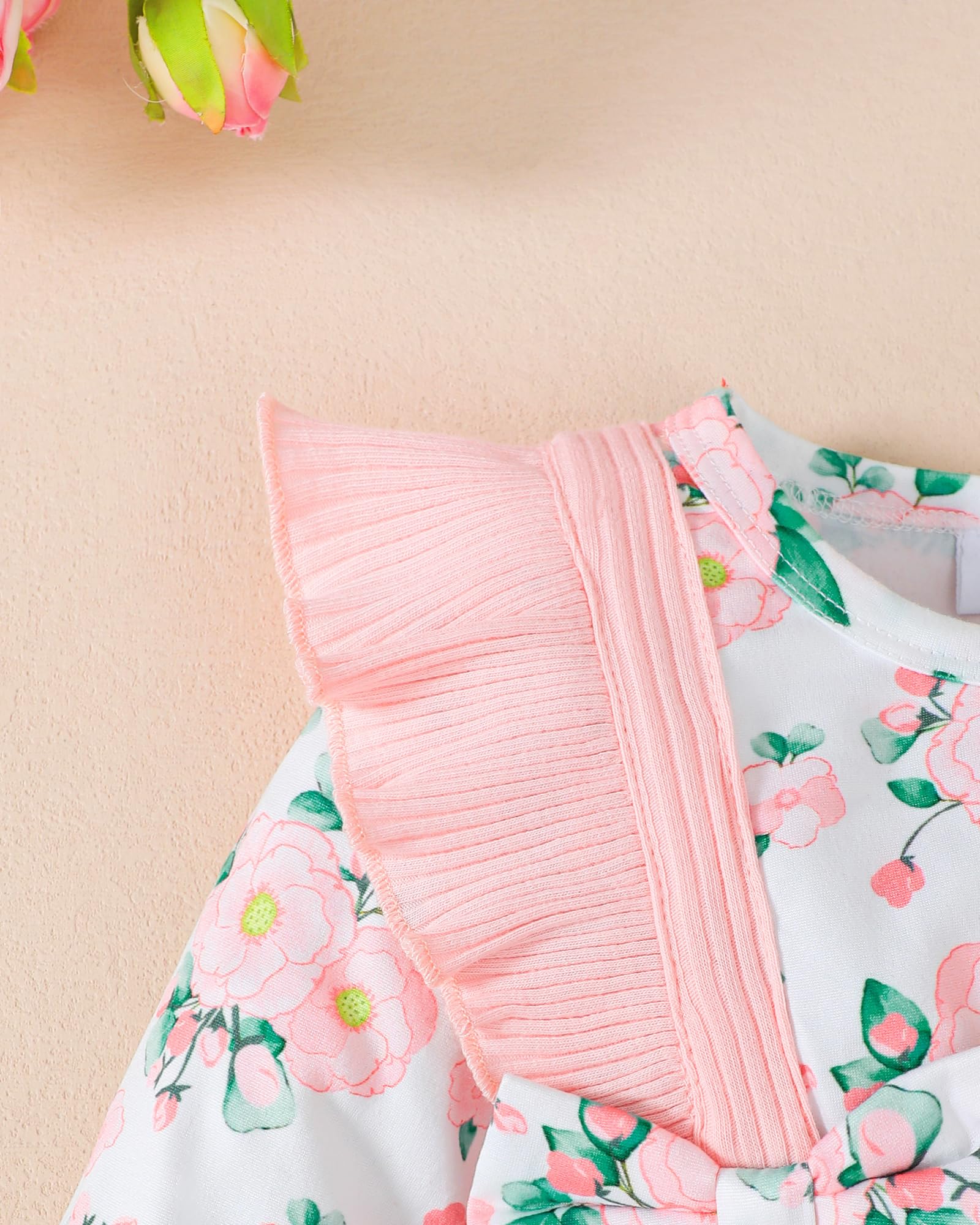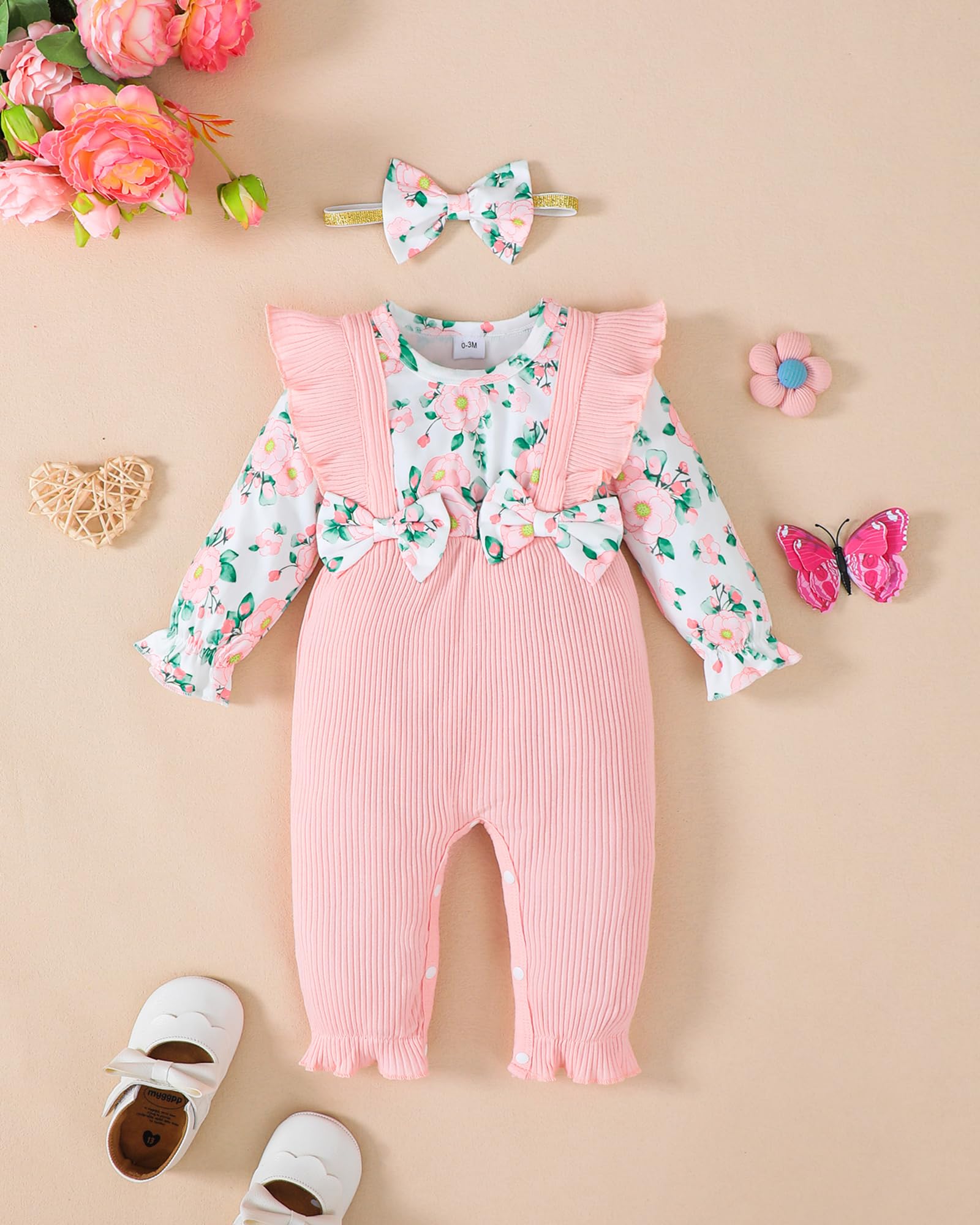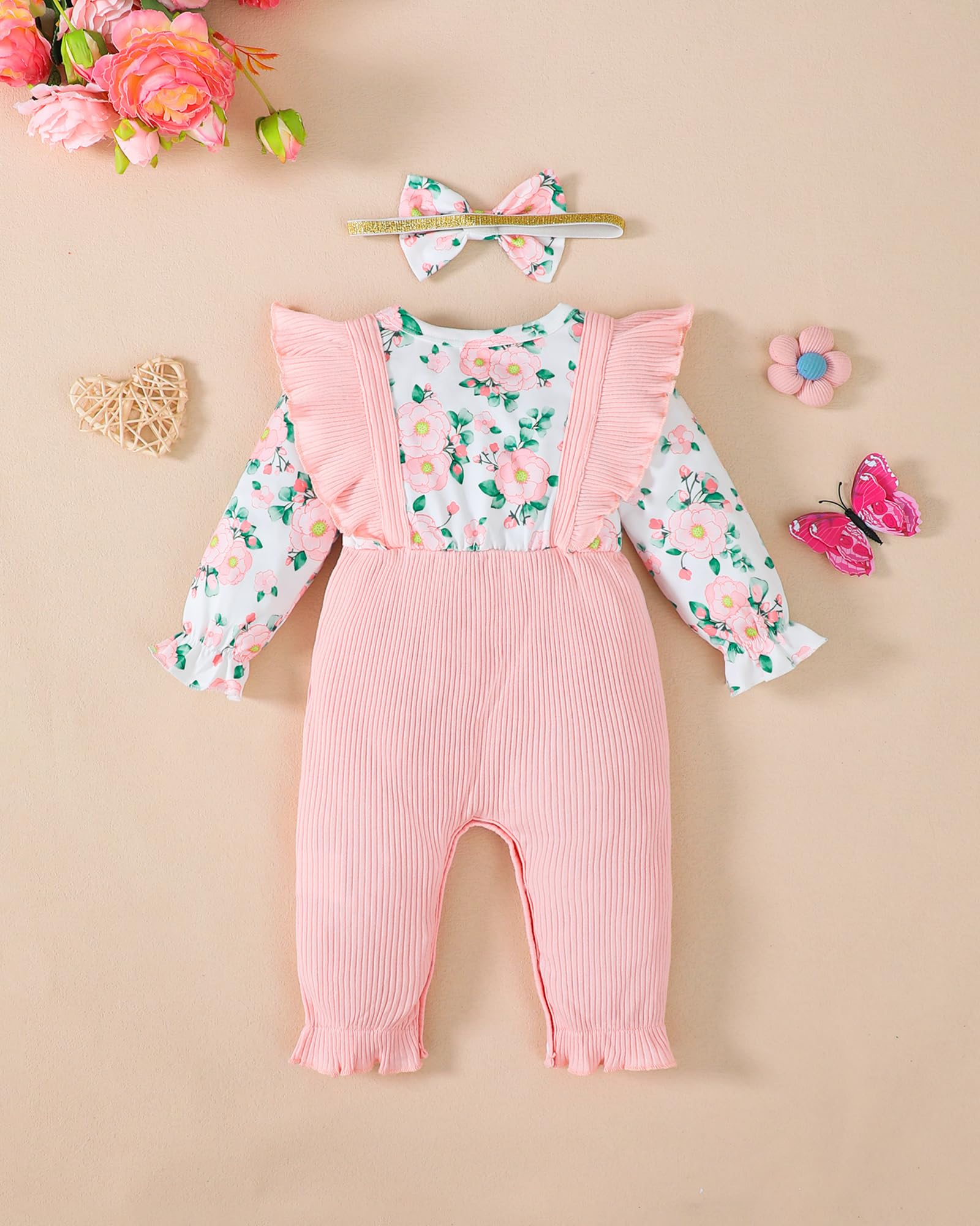 Baby Girl Clothes Set: 1*long sleeve jumpsuit + headband, total 2 pieces outfits for girls
