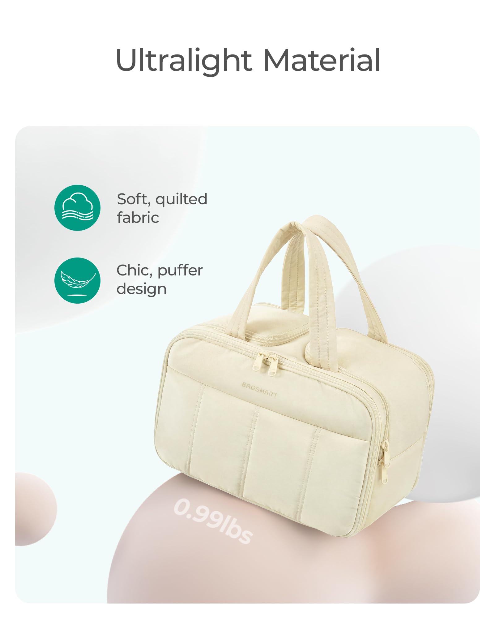 Cute and Soft Materials & Handle: The handle is also made of soft material to relieve your pressure. Made of soft and luxurious fabric, this puffy toiletry bag is like a soft, stretchy pillow, a super cute toiletry bag. Efinitely an ideal Christmas gift for yourself, your family, and your friend.