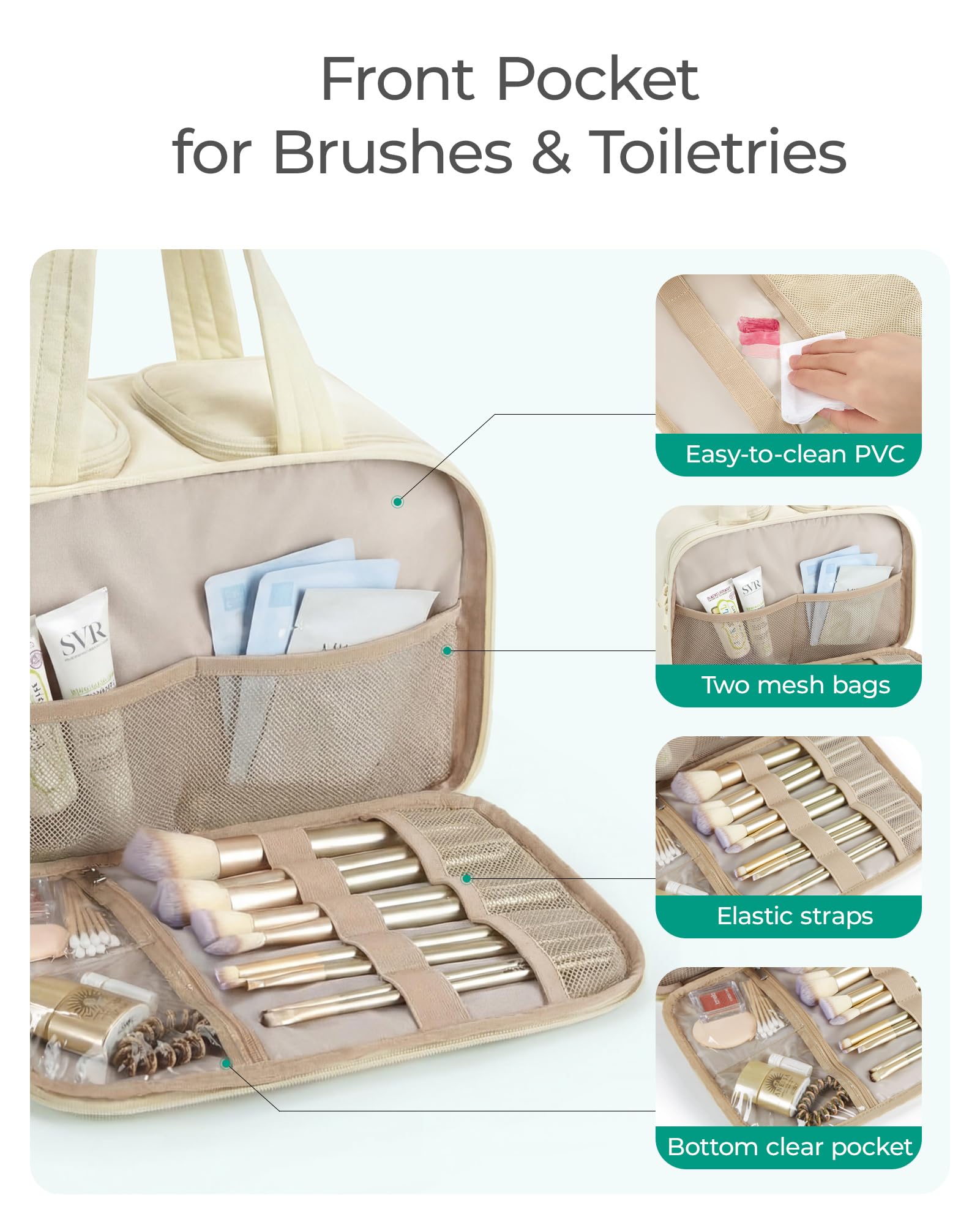 Main Compartments of Toiletry Bag : Two main compartments of toiletry bag for women is large capacity, with elastic straps hold bottles upright; double zipper compartment is for easy access. Partition storage can make your items more organized and avoid piling up.