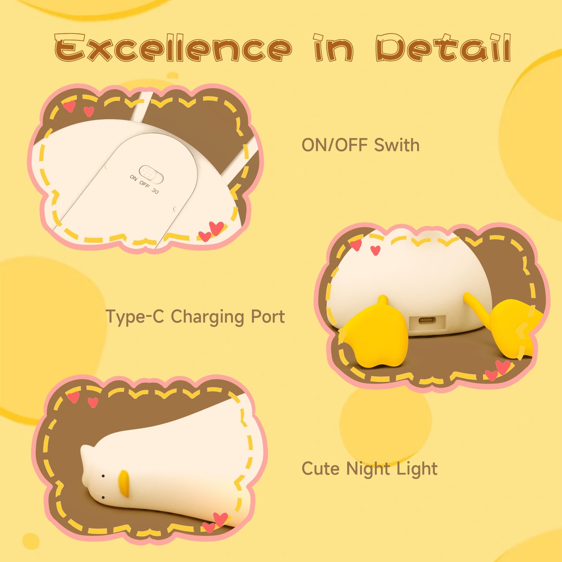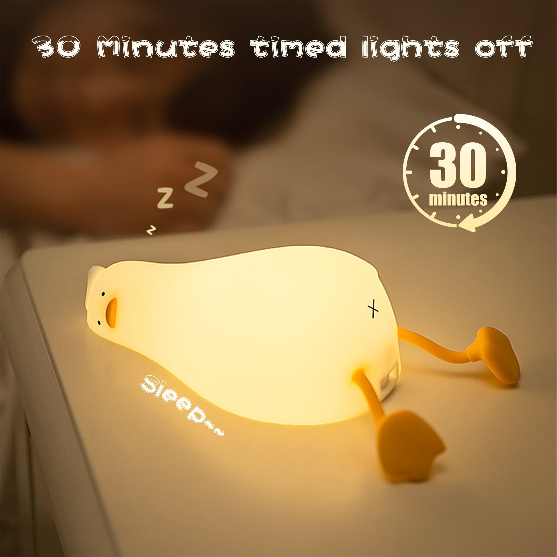Lasts Up to 12H, Accompany You to Sleep: Say goodbye to scary monsters under the bed! With the built-in 1200mAh battery that offers up to 12 hours of continuous operation after charging. Let the adorable lay flat duck light to accompany your little ones through the night. No need to fear the dark anymore