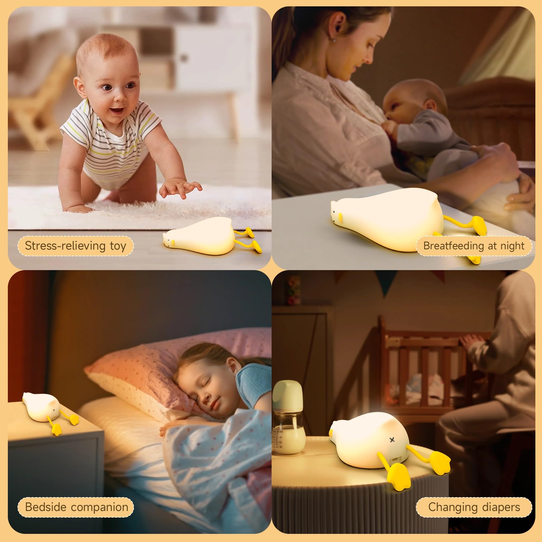 Perfect Duck Night Light: The cute duck light is used as a bedside lamp not only for breastfeeding, reading, and preventing falls during the night, but also as a camping light, emergency light, and flashlight.Best idear for your friends, children or yourself Also a ideal for birthday,Christmas Halloween,children's day,Valentine's Day and home office, party decoration,housewarming,send roommate