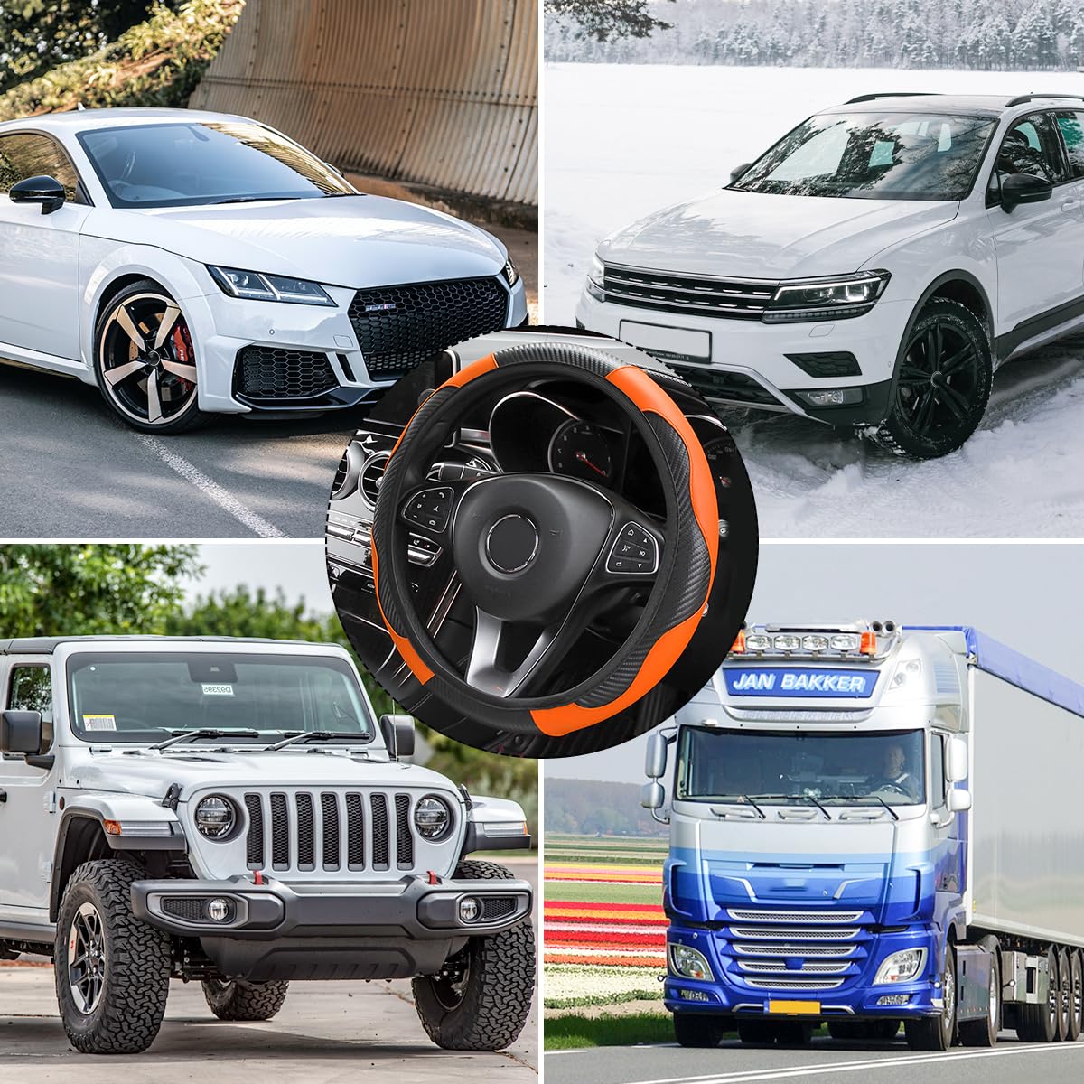 【Perfect Fit】: The steering wheel cover is suitable for all steering wheels with diameters from 14.5 inches to 15 inches and can be used on 98% of automobiles. Whether your car is a sedan, suv, van or other vehicle, you can dress up and protect your steering wheel with this stylish steering wheel protector.