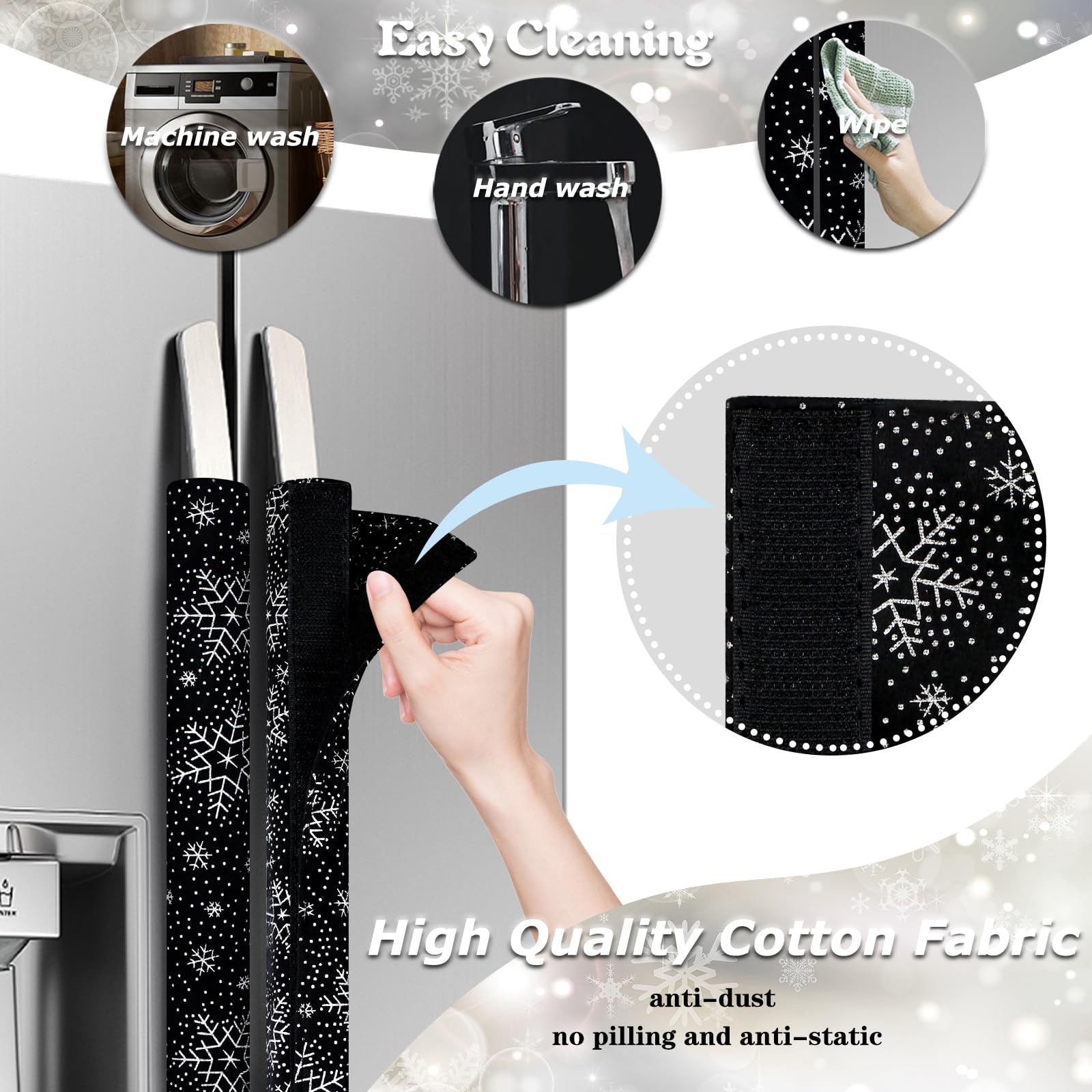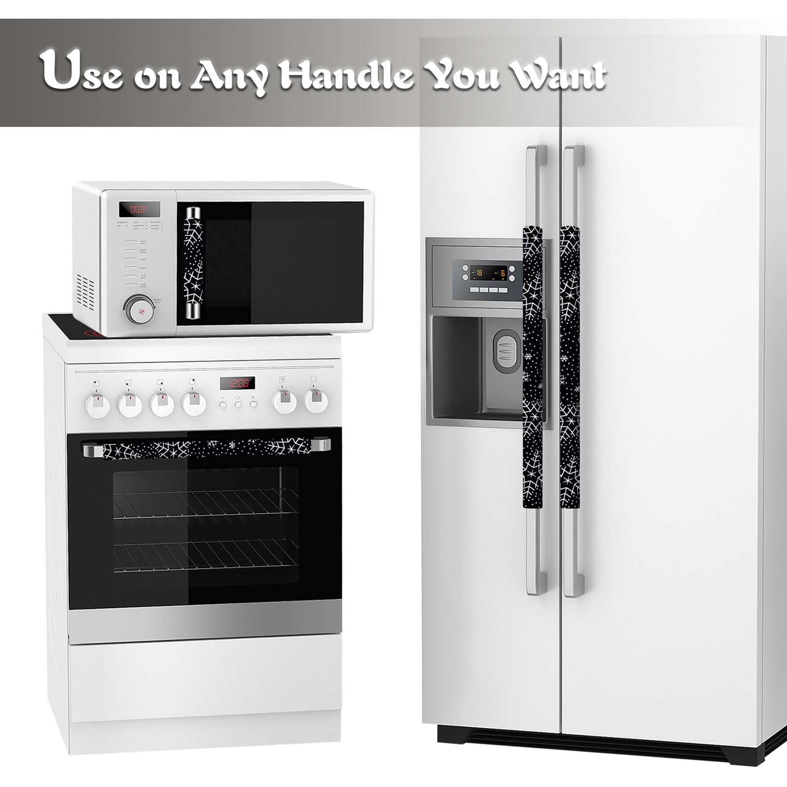 SET OF 3 Handle Covers : Our covers have a Velcro fastening for easier adjustment, and a perfect fit to any kitchen appliance(Fridge, microwave, oven, kitchen cabinet, dish washer and other appliances.)