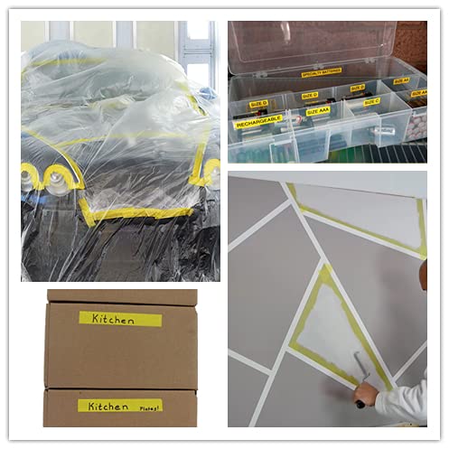 Wide Application : Yellow masking tape ideal for home painting , automobile painting, watercolor painting and acrylic painting.Also can be used as labeling tape for color coding on moving boxes, storage containers, cabinets, cables, documents. Use it in home decoration, party decoration, wall art, greeting cards, scrapbooking, automotive repair and much more
