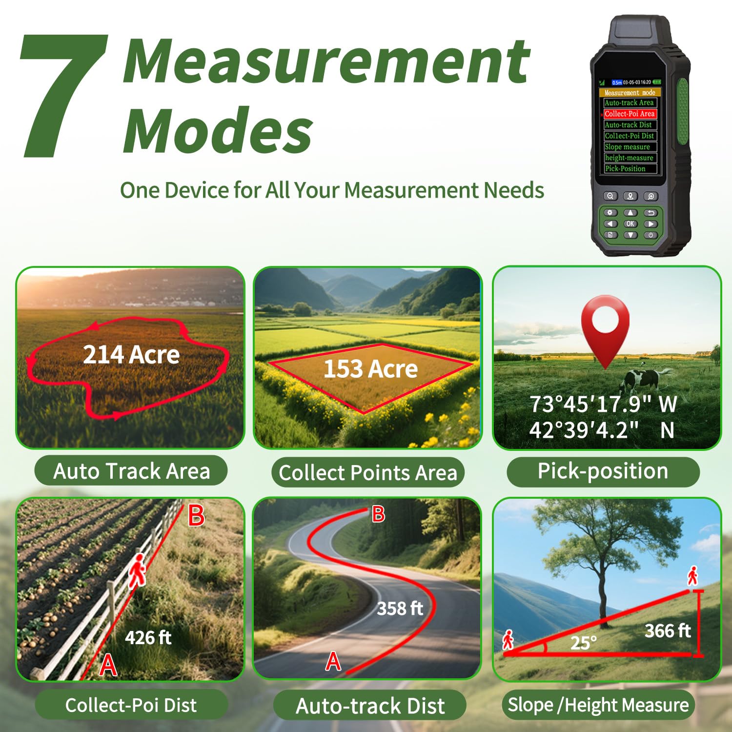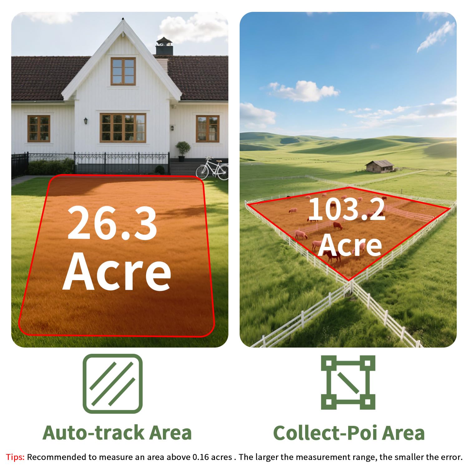 EASY TO USE: Intuitive user interface with backlit buttons for quick and easy operation. The device needed to be held horizontal for taking measurements. Recommended to measure an area above 0.16 acres and distance above 328 ft. The larger the measurement range, the smaller the error