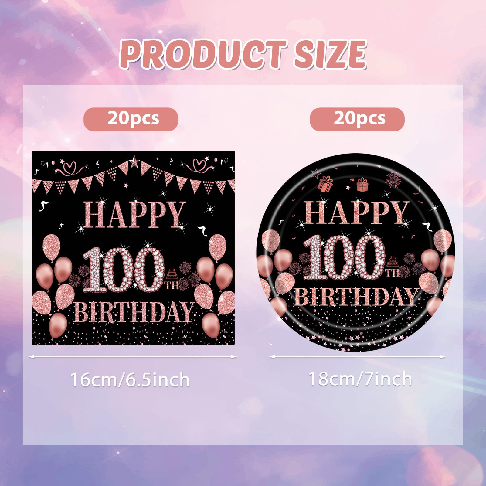About us KHAIVI is a supplier specialized in party decorations. We offer a wide range of party decorations. We are constantly working on new designs to meet your individual party decorating needs. If you have a requirement for birthday decoration, please make sure you let us know so that we can serve you better. 100th Birthday Decorations for Women Just Enjoy Your Party,The rose gold 100th birthday decorations create a gorgeous and elegant birthday party for you to celebrate her 100th birthday, add joyful atmosphere to the birthday party and make it an unforgettable moment for her, yourself and your family. When the party is over, you can spend more time with family or friends and save clean up time by throwing the plates and napkins party supplies out. Decorate with our boutique 100 birthday disposable dinnerware set, enjoy a high grade, custom-made assortment of ornaments to light up your special day! Package Include: 20 7" paper dessert plates; 20 paper Napkins; Attention 1.This product is not edible, and do not use in the oven or microwave oven. 2.Manual measurement, please allow slight errors on size. 3.The color may exist a slight difference due to different screen displays.