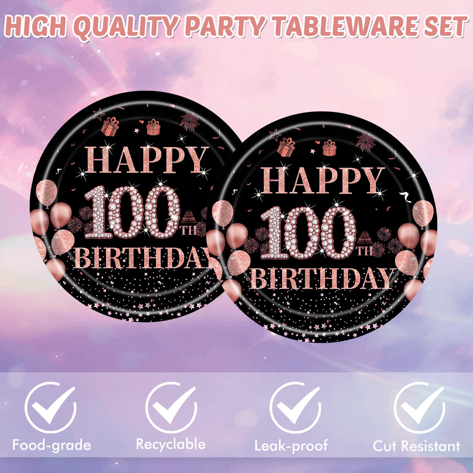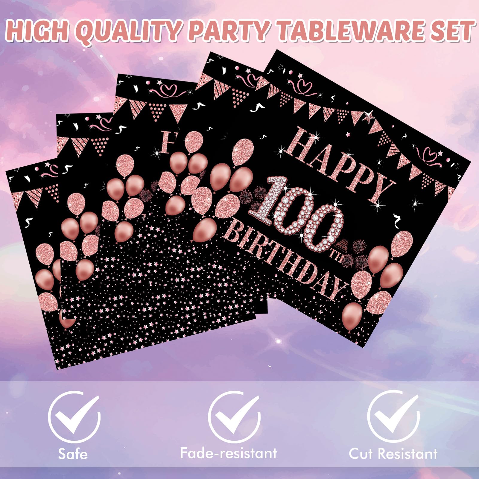 【Viintage 1925 Birthday Decorations for Women】: With elegant rose gold design,big font "Happy 100th Birthday", with black background, and adding cake, balloons, rose gold pink diamonds ,ribbons and other rich birthday elements,The design is very beautiful and novel,for your Add a rich ambience to the party and impress your family and friends.