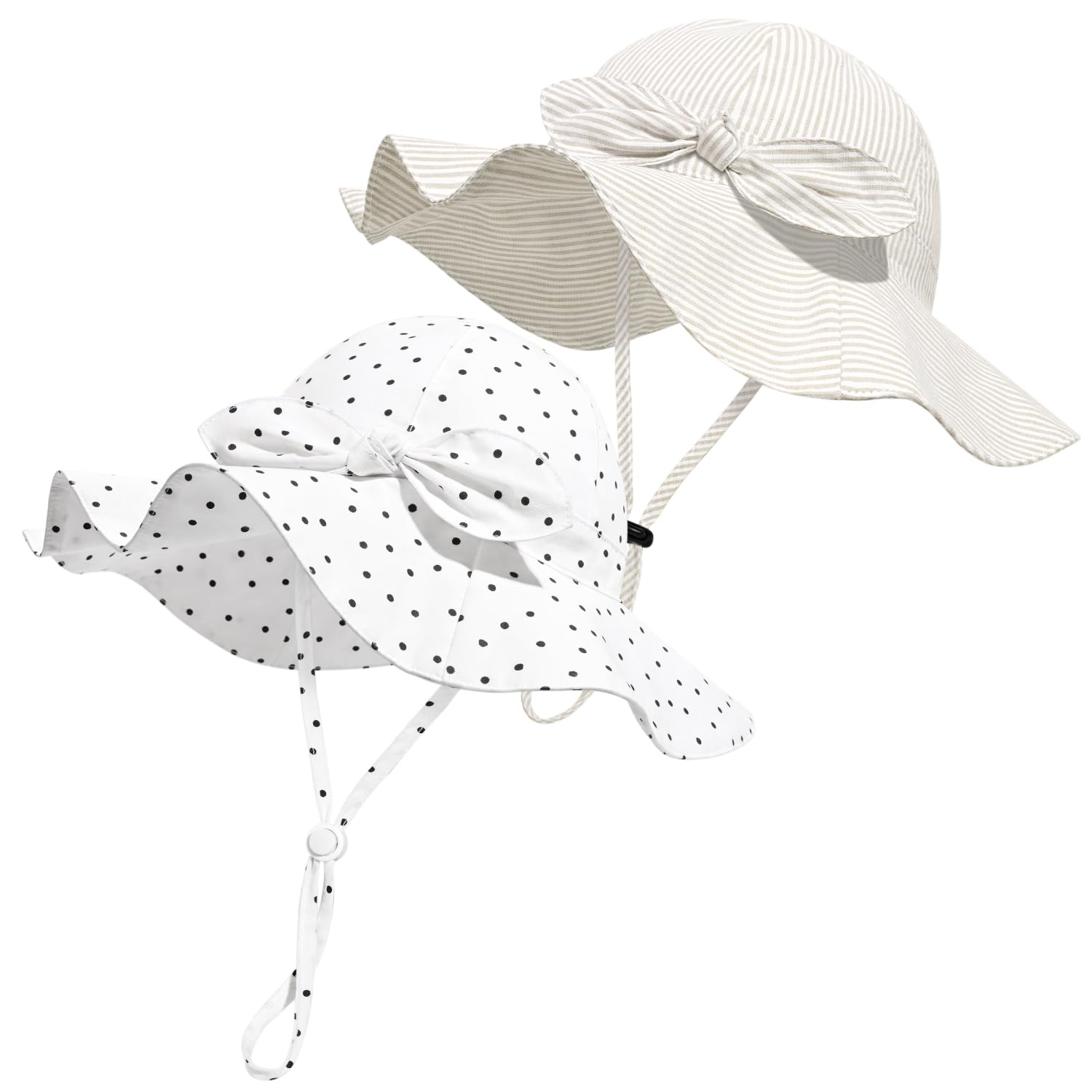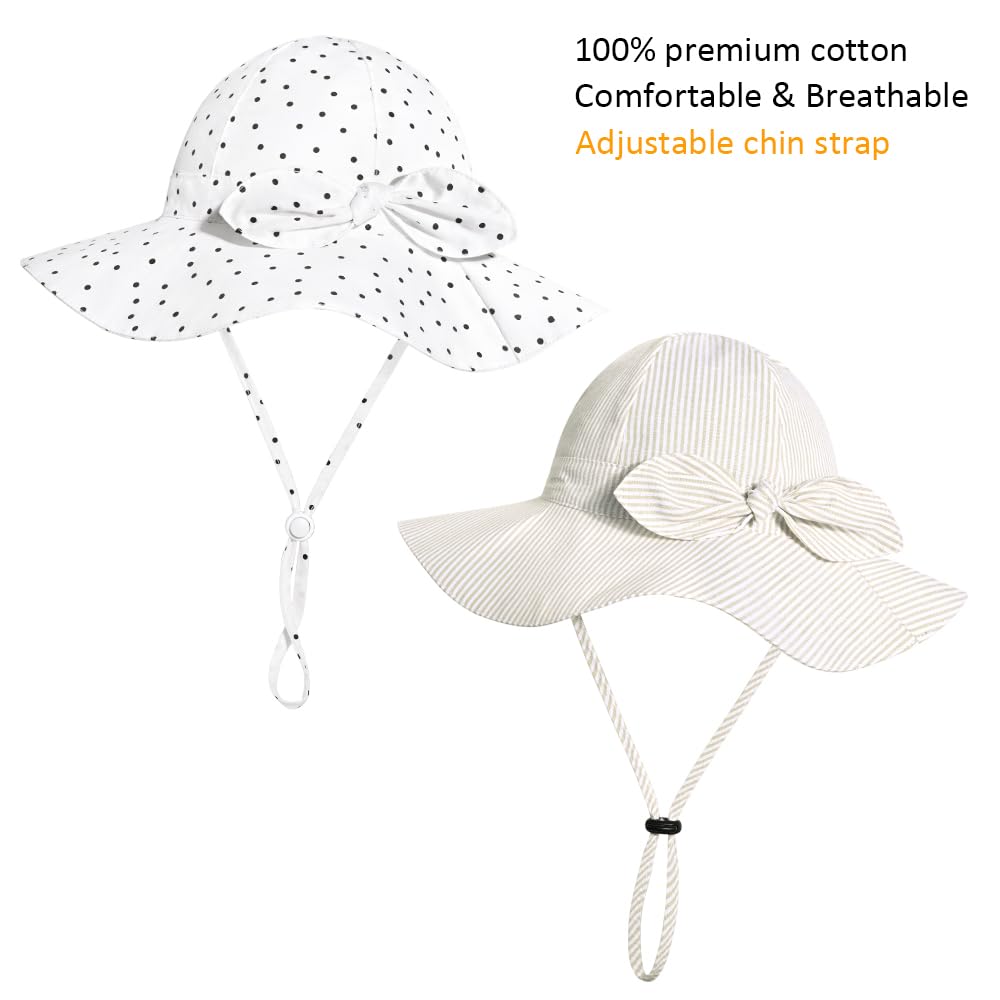 FASHIONABLE: Wide brim baby sun protection hat with bow tie is the perfect accessory for you. Comfortable, extra soft lining & patterned design, perfect for all day wear.Breathable material keeps baby cool.