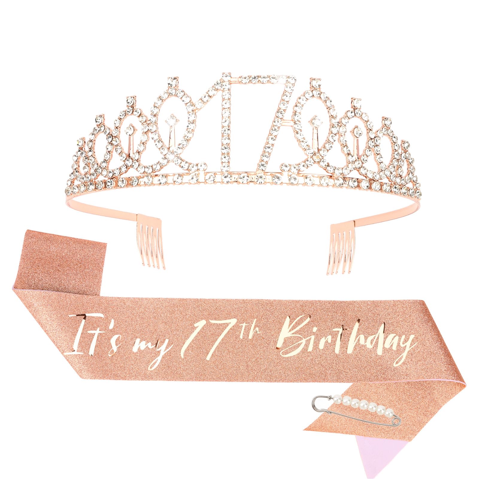 🎁【Large Size and Durable Material】The large pink 17th birthday gift bag for girls is 11.8"x 9.4"x 5.3", which is big enough to hold most gifts of your choice. The 17th birthday greeting card is 4.7"x 7" and the rose gold 17th wrapping tissue paper is 27.5"x 20". The material of this rose gold 17th birthday wrap bag is thick paper, which is strong and durable.