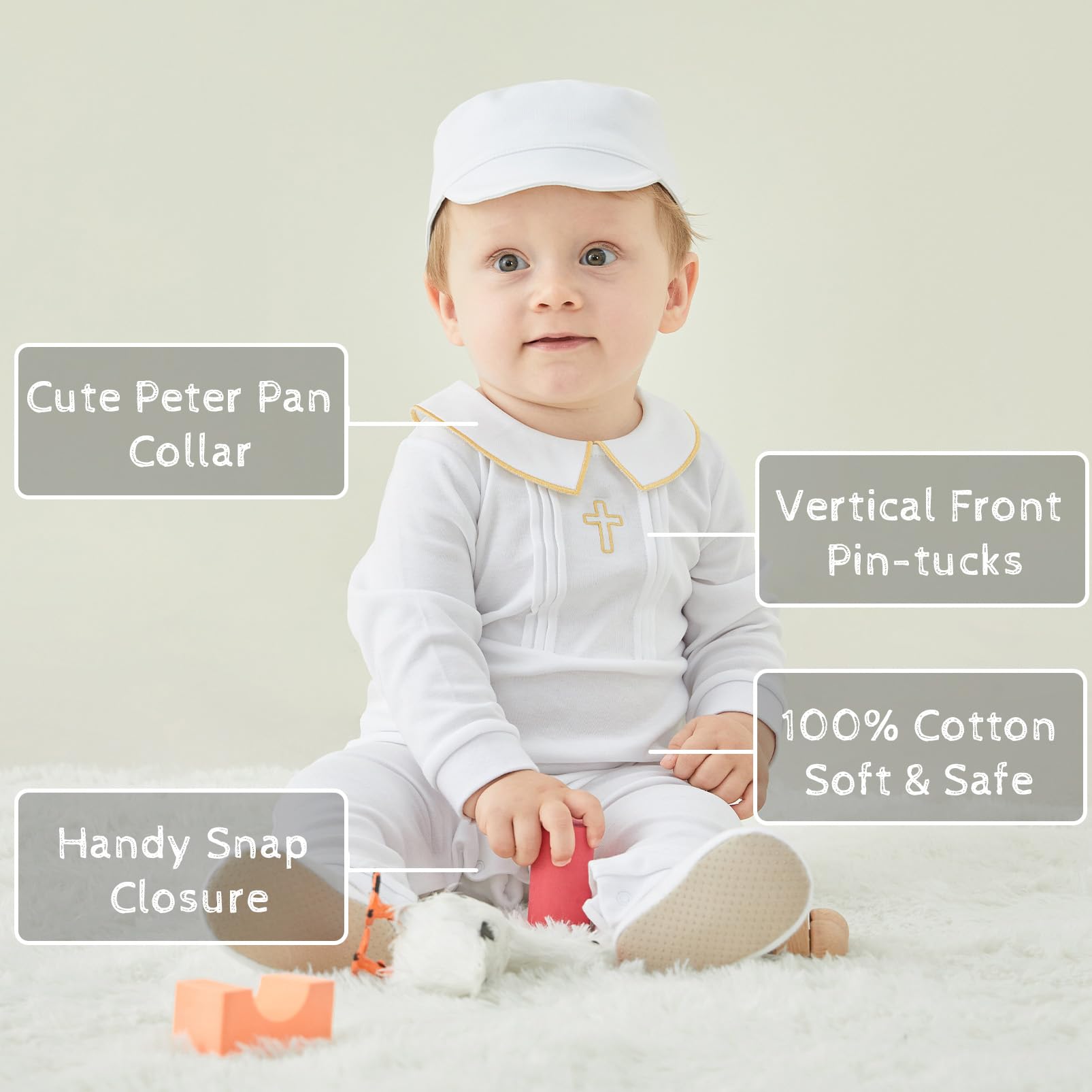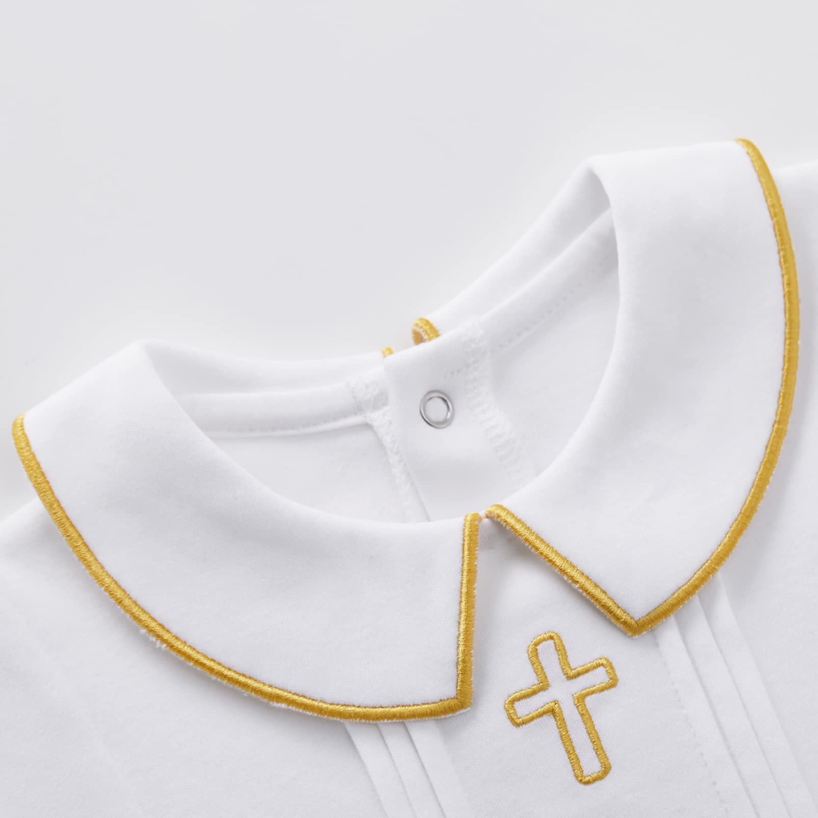 BAPTISM MUST-HAVE - This christening outfit features a golden cross, decent collar with golden edge, perfect for baby shower, baptism, blessing day, christening, first communion, dedication