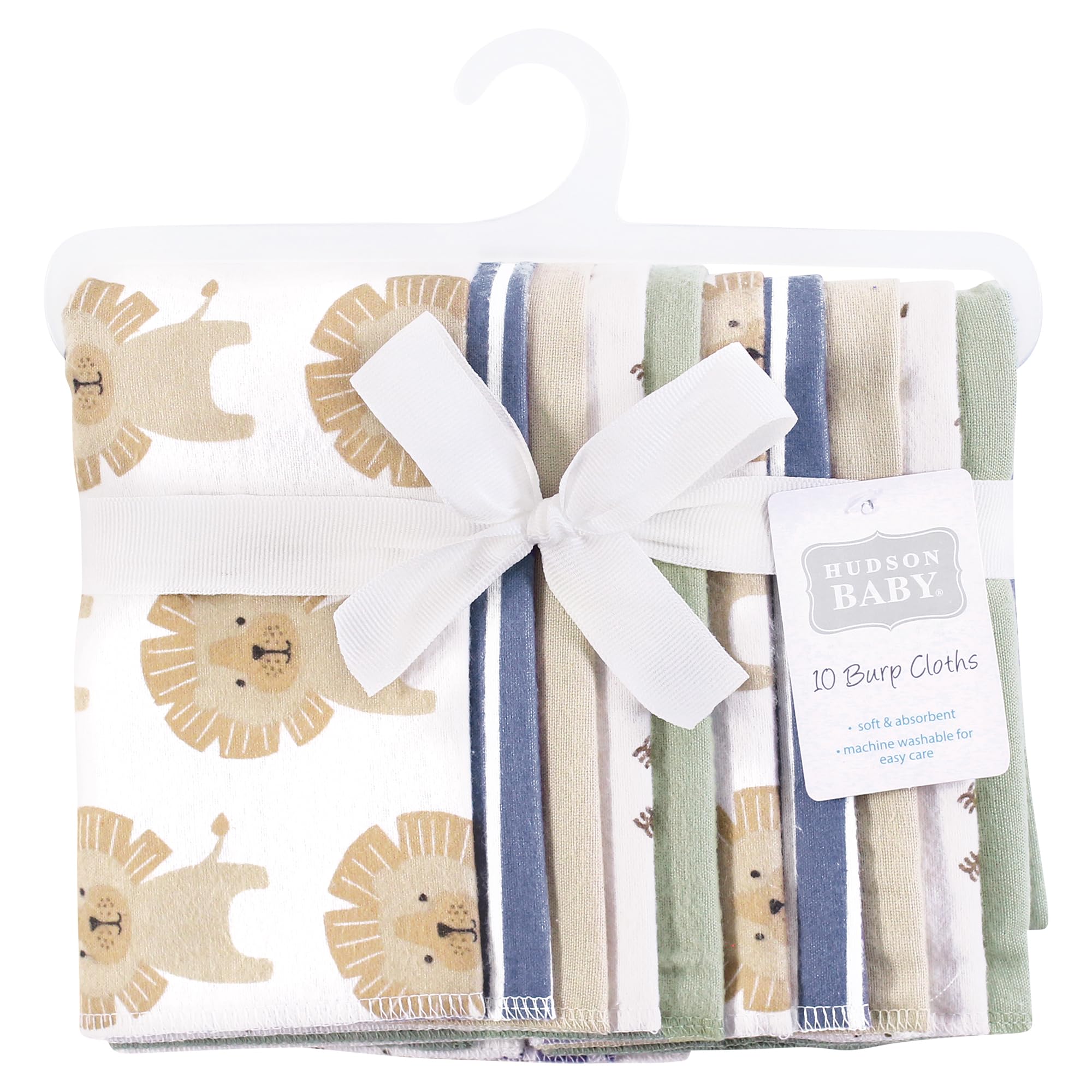 Hudson Baby flannel burp cloths feature multiple layers of fabric to help clean up the messes and spills that you are bound to encounter with your new baby. Our burp cloths are soft and gentle when used on baby's skin and help protect parent's clothes from drool and spills while feeding, burping, and snuggling baby. Our burp cloths will come in handy everyday, whether you are hanging out at home, traveling, or leaving your little one at daycare.