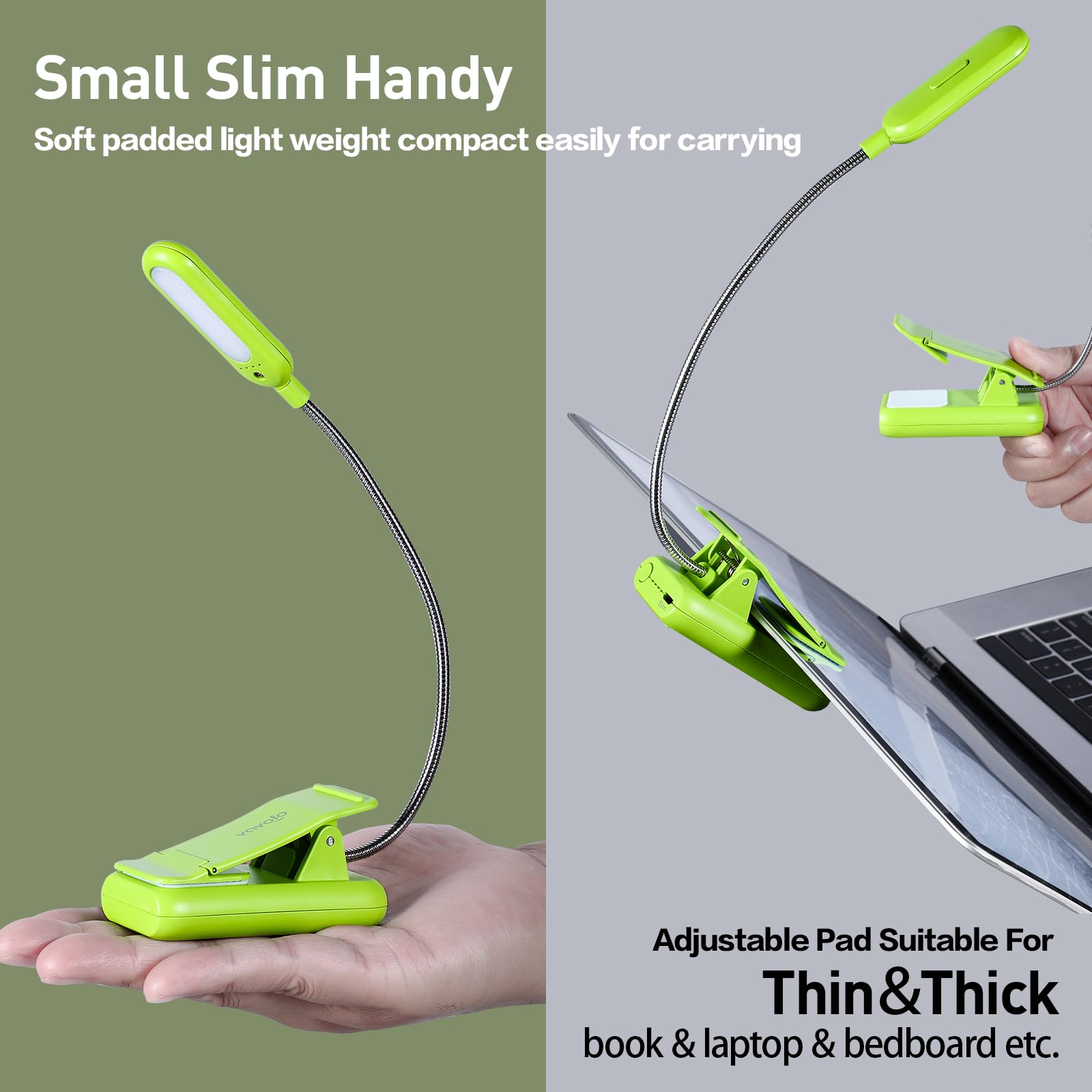 【360°Flexible Goose Neck & Non-slip Clip Design】- The Vavofo's reading light has the 360 degree adjustable neck with multi use non-slip clip which allows you to position the light exactly where you need it, creating the perfect private reading space for you while reading in bed, in college dorm, or on a plane, train, or bus. It can also be placed on the tabletop, work surface, etc. The lightweight, portable, & travel-friendly only 2.59 oz weight
