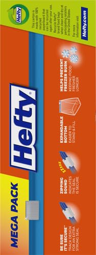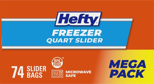 QUART SIZE HEFTY FREEZER BAGS-This pack includes 74 quart size Hefty Slider Freezer Bags