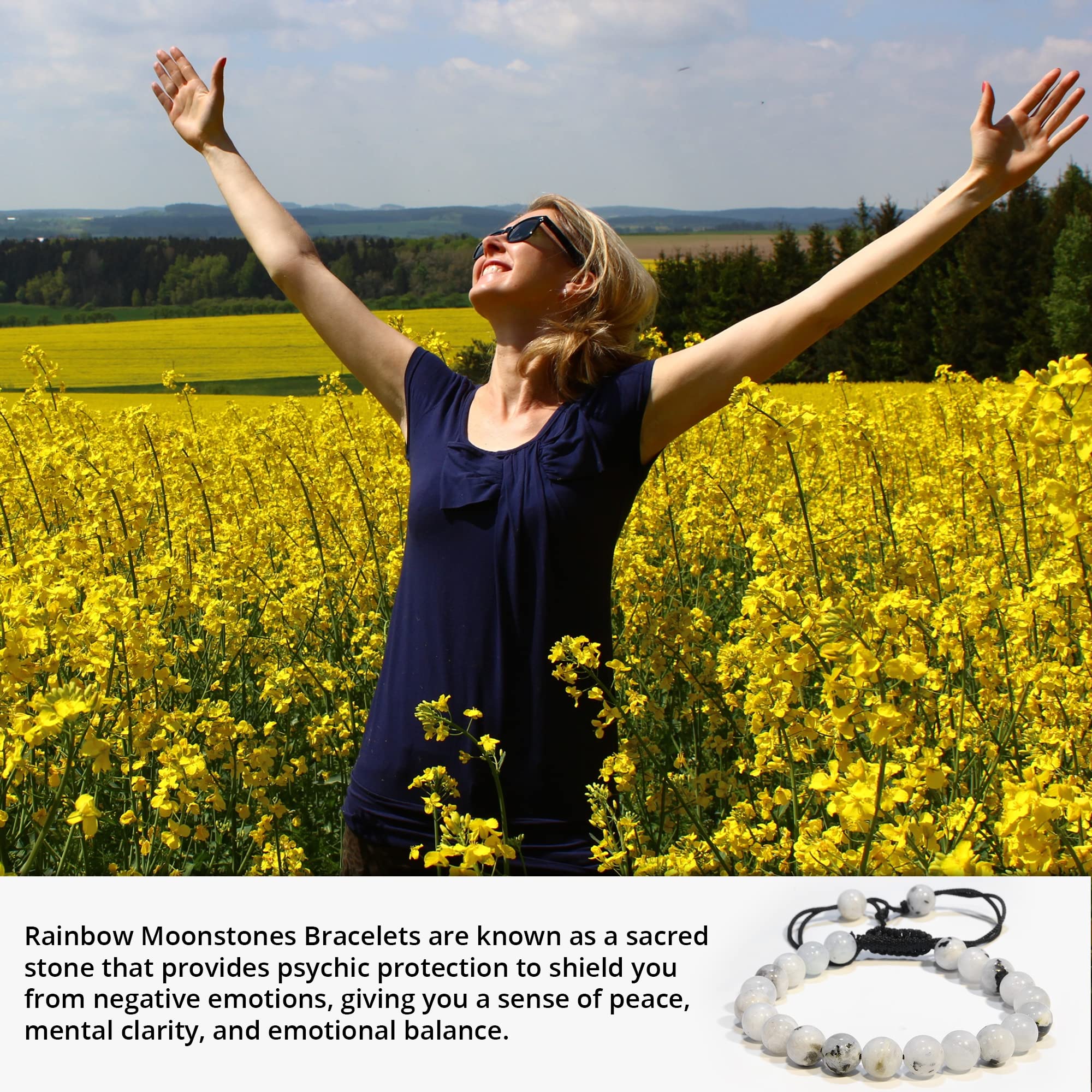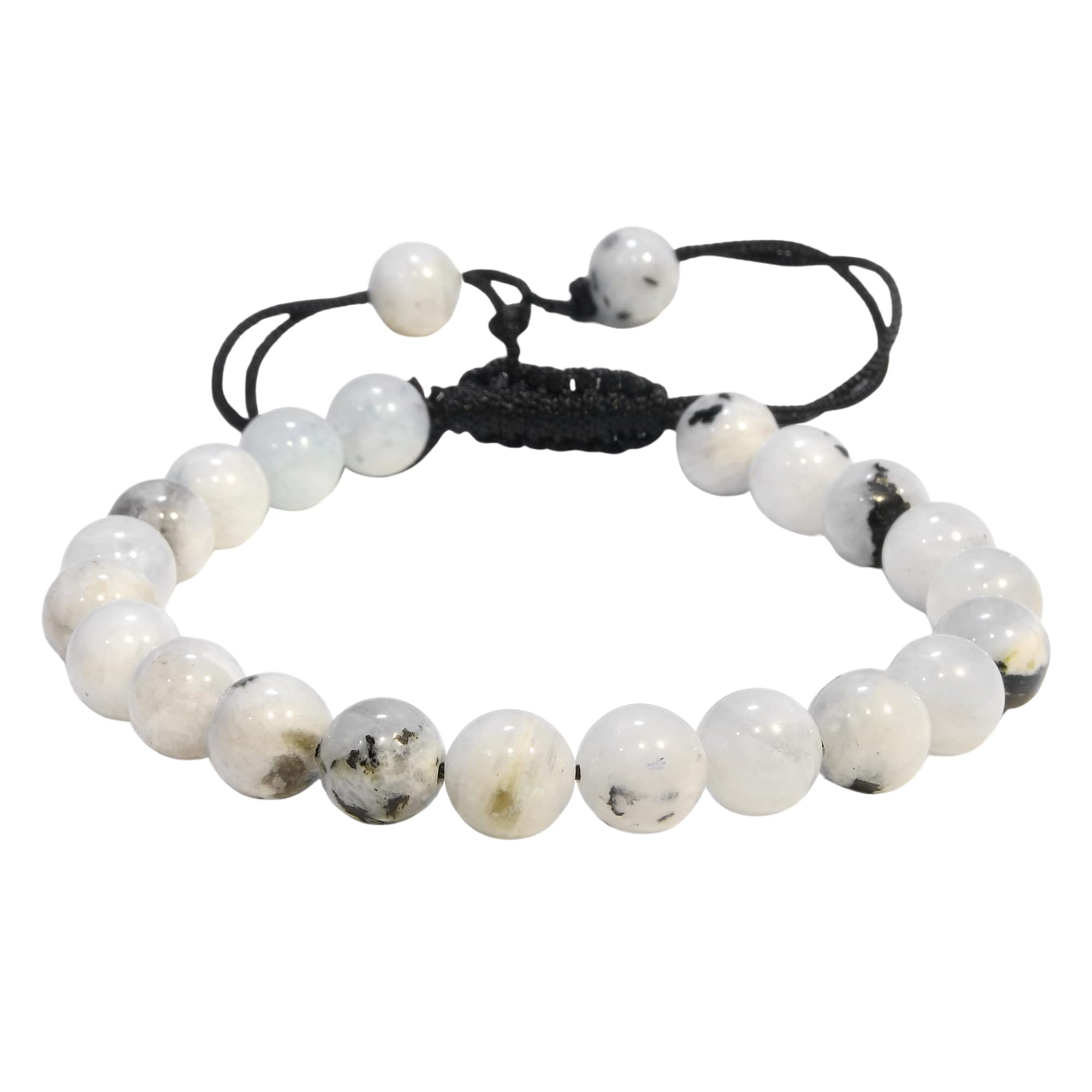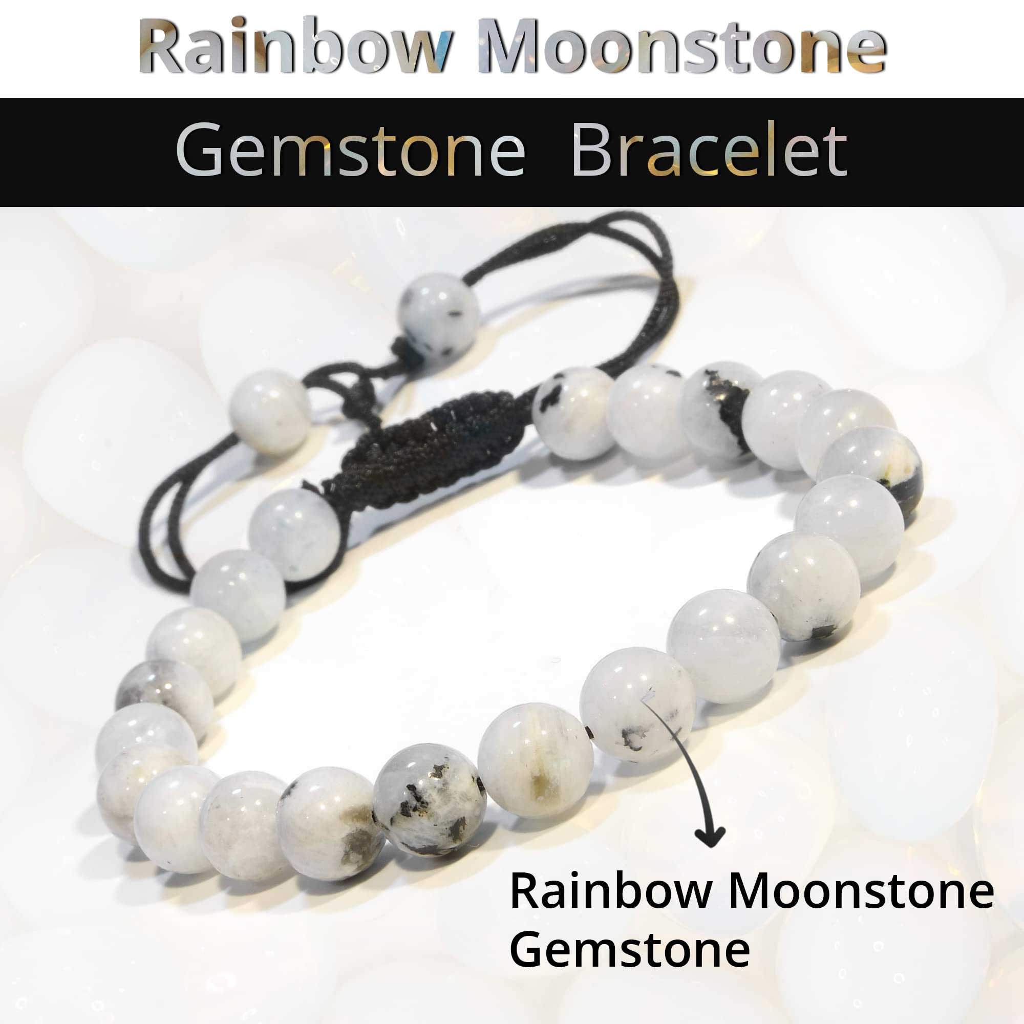 Rainbow Moonstone: Our healing bracelets for women and men are made with high-quality, carefully selected real gemstones, smoothly rounded to perfect 8mm beads and an elastic string with macrame closure for comfortable and long-lasting wear.