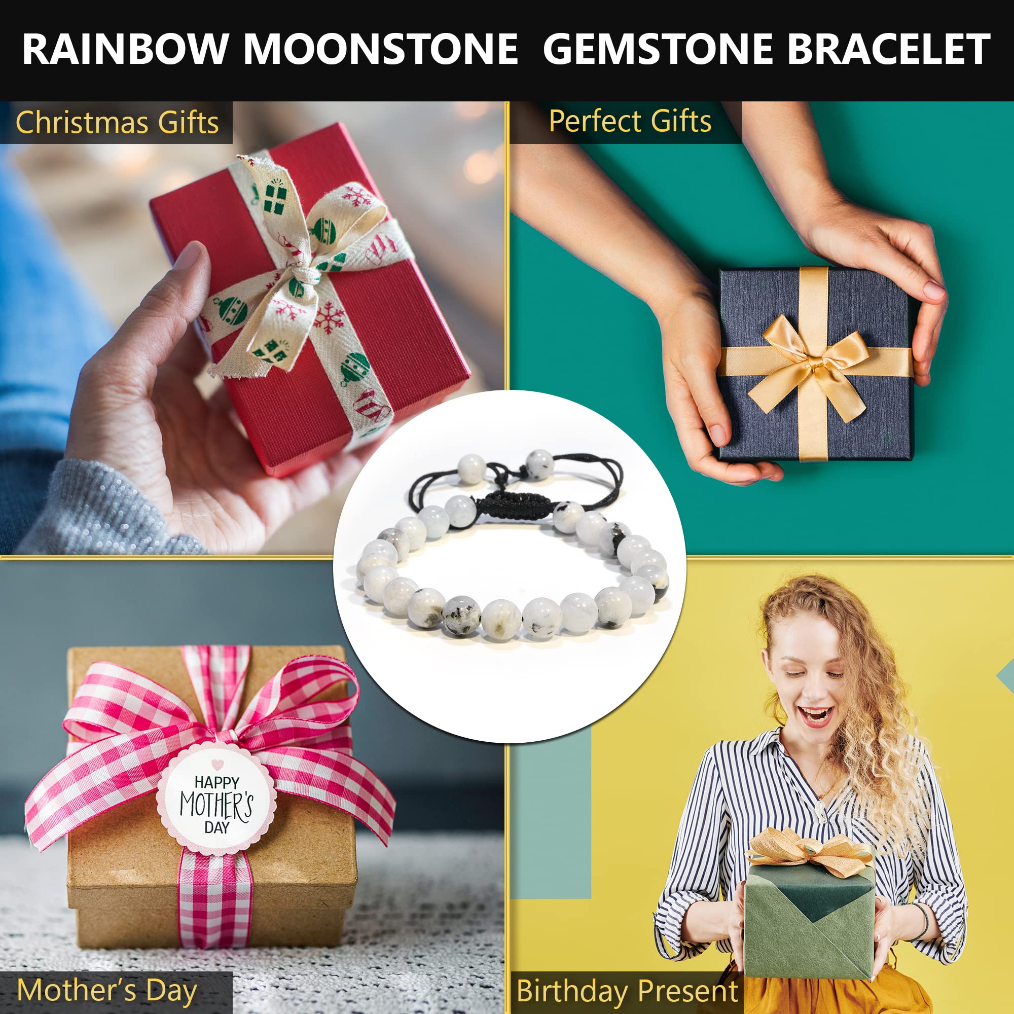 Moonstone Bracelets: The crystal bracelet for women and men is lightweight and comfortable to wear thanks to the adjustable macrame string. This macrame addition allows you to adjust the bracelet to any wrist size and enjoy a custom fit without any discomfort.