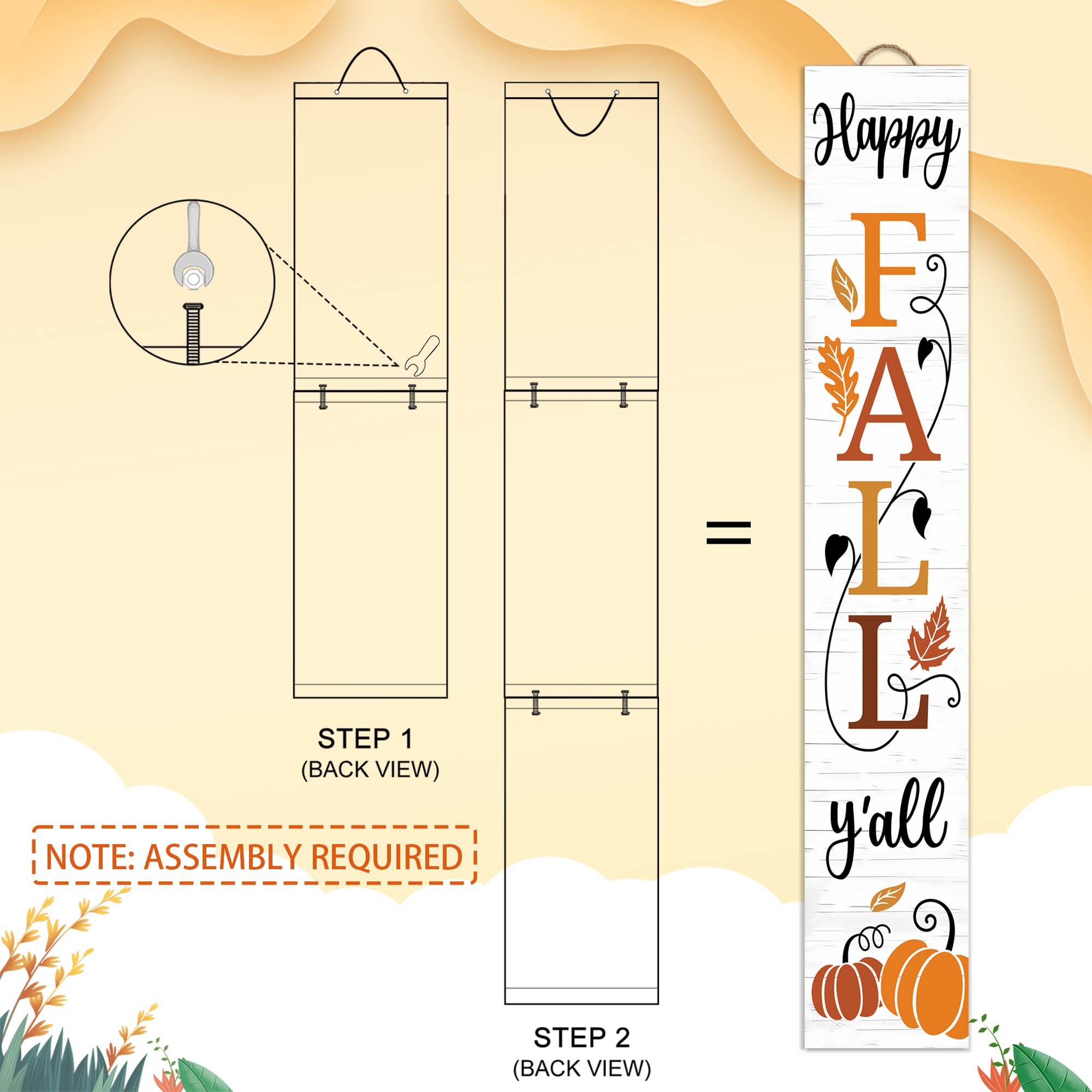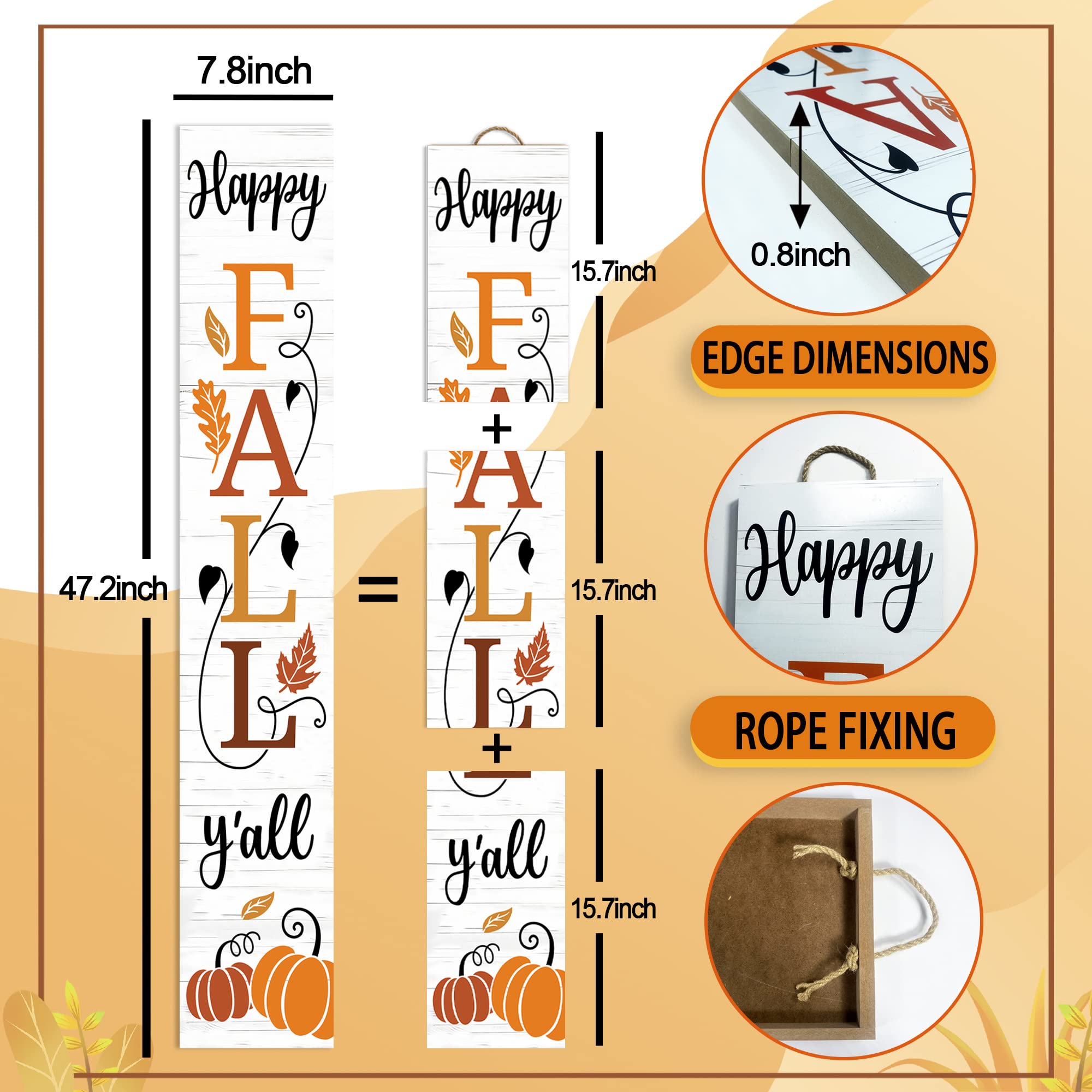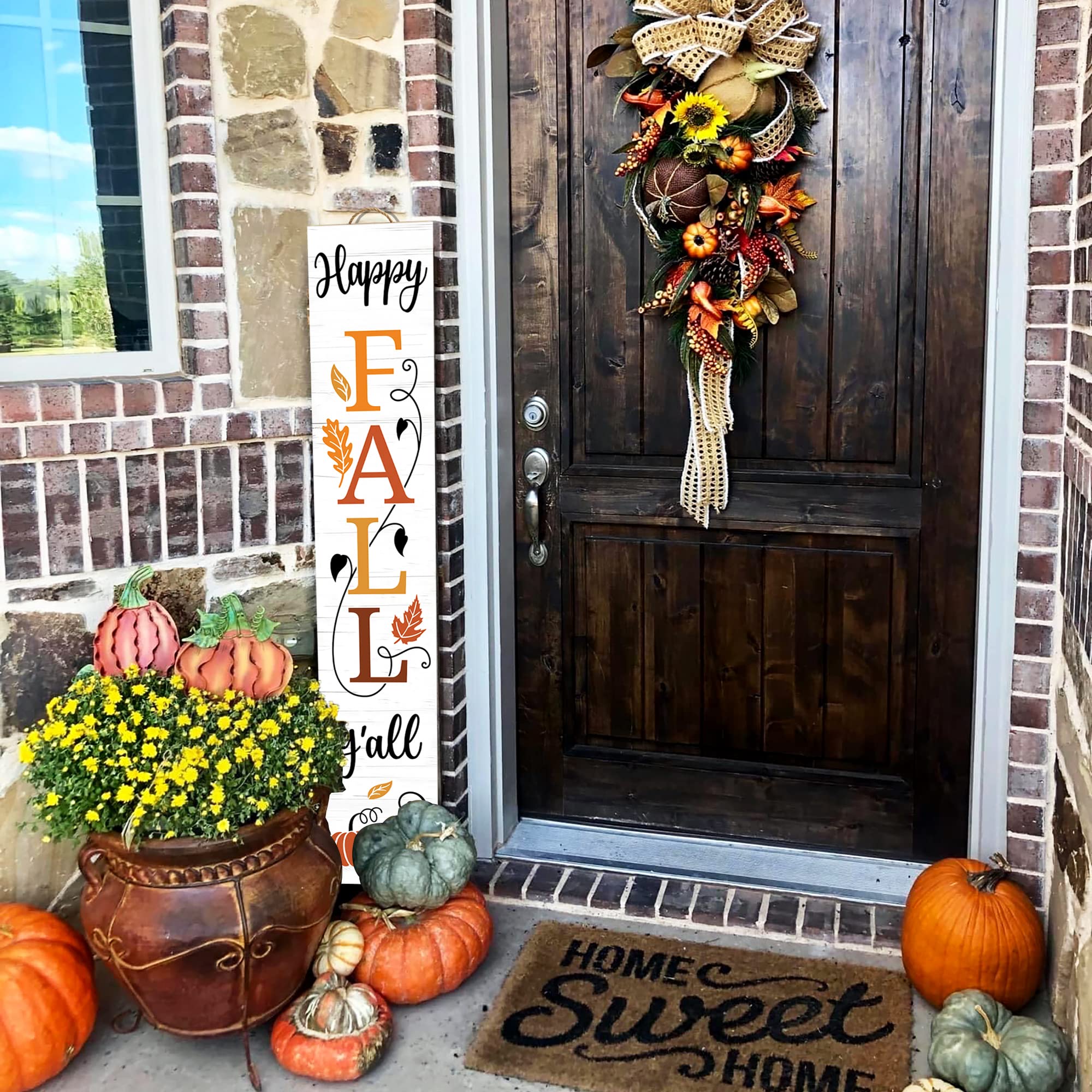The board measures 47.2"x7.8", welcome the season with this autumn wooden porch welcome sign. Stylish and inspirational. Printed with vintage autumn leaves and the tagline happy fall y’all. A very nice logo for the autumn and Halloween display!
