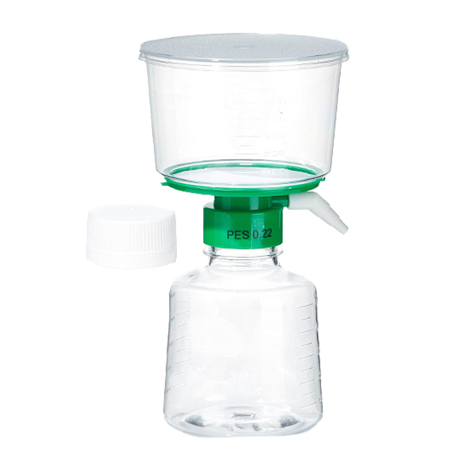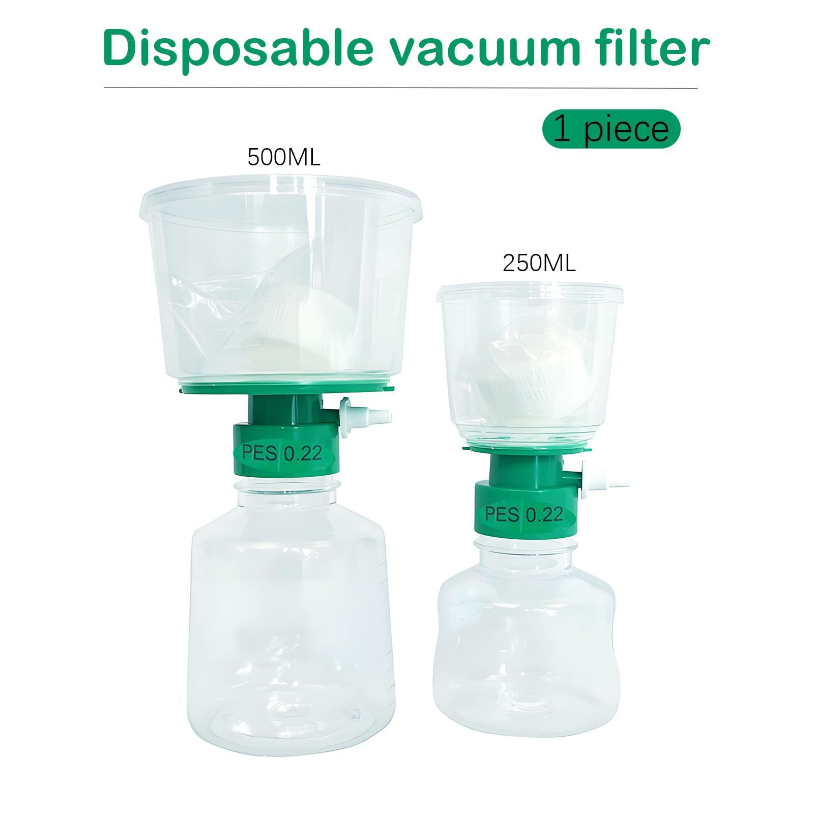 【DIMENSION & SPECIFICATION】: The disposable vacuum filtration device is equipped with a filter funnel capacity of 250ML, with a neck adapter with a diameter of 50mm, and a polyether sulfone (PES) membrane with a pore size of 0.22um, and one set is provided per package.