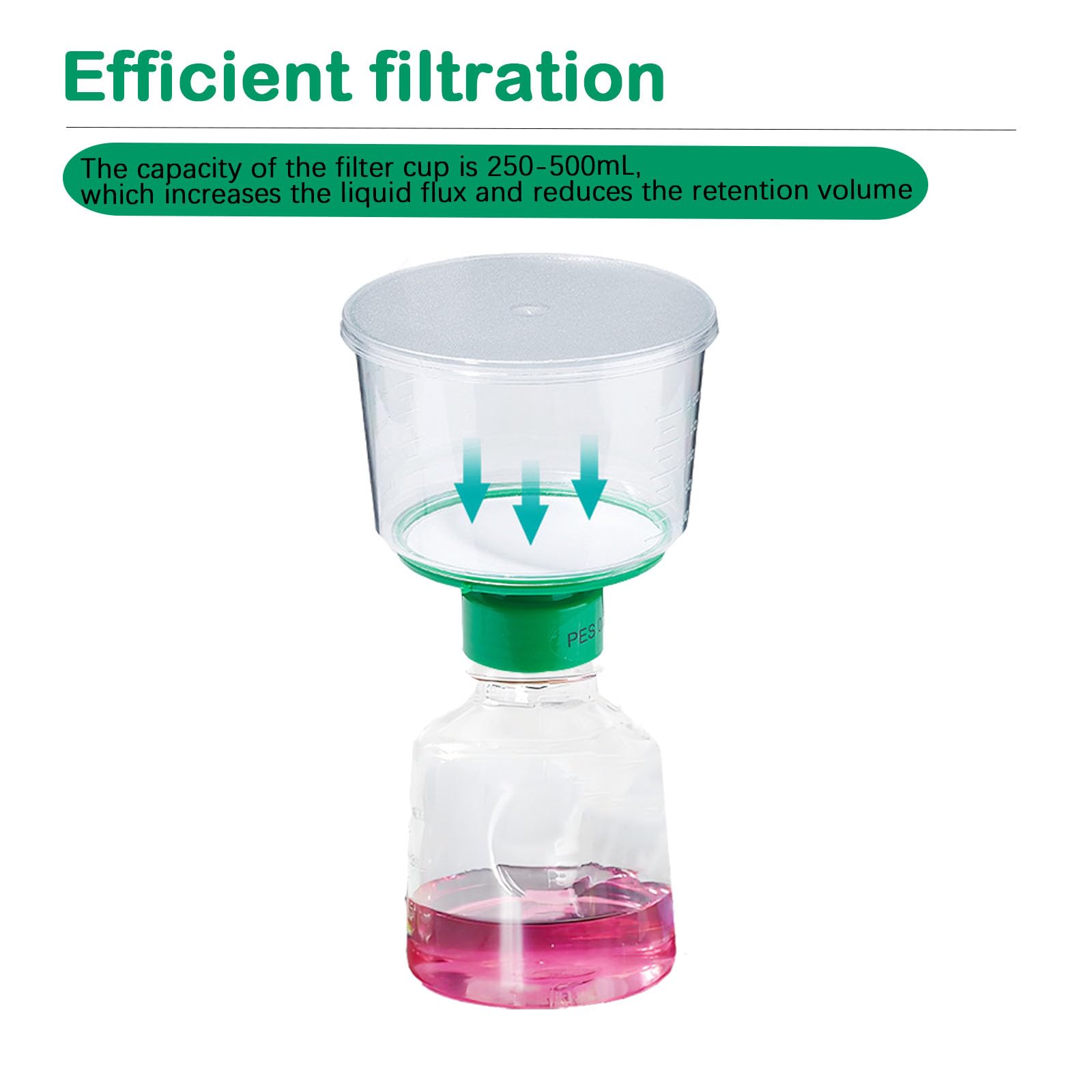 【SIMPLE & EASY TO OPERATE】: Pre-filtratio to out-of-the-box, with graduated upper and lower containers, ultra-high flow rate and flux, and faster liquid filtration, making filtration more convenient and easy to operate.