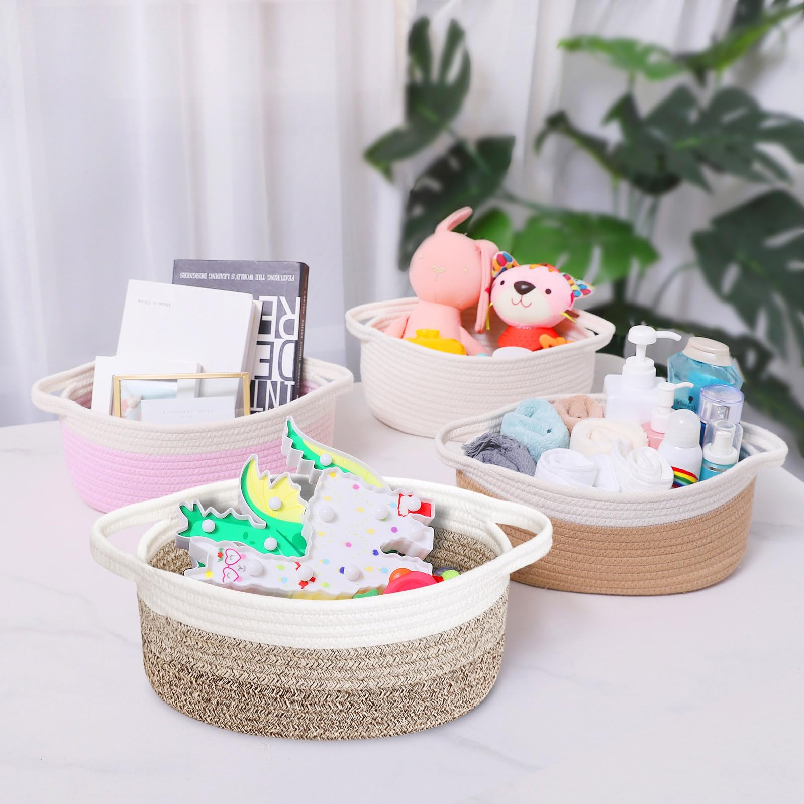 100% cotton material, small rope basket, natural, chemical-free, skin-friendly, woven basket safe for baby and pets, scratch-free to floors or walls