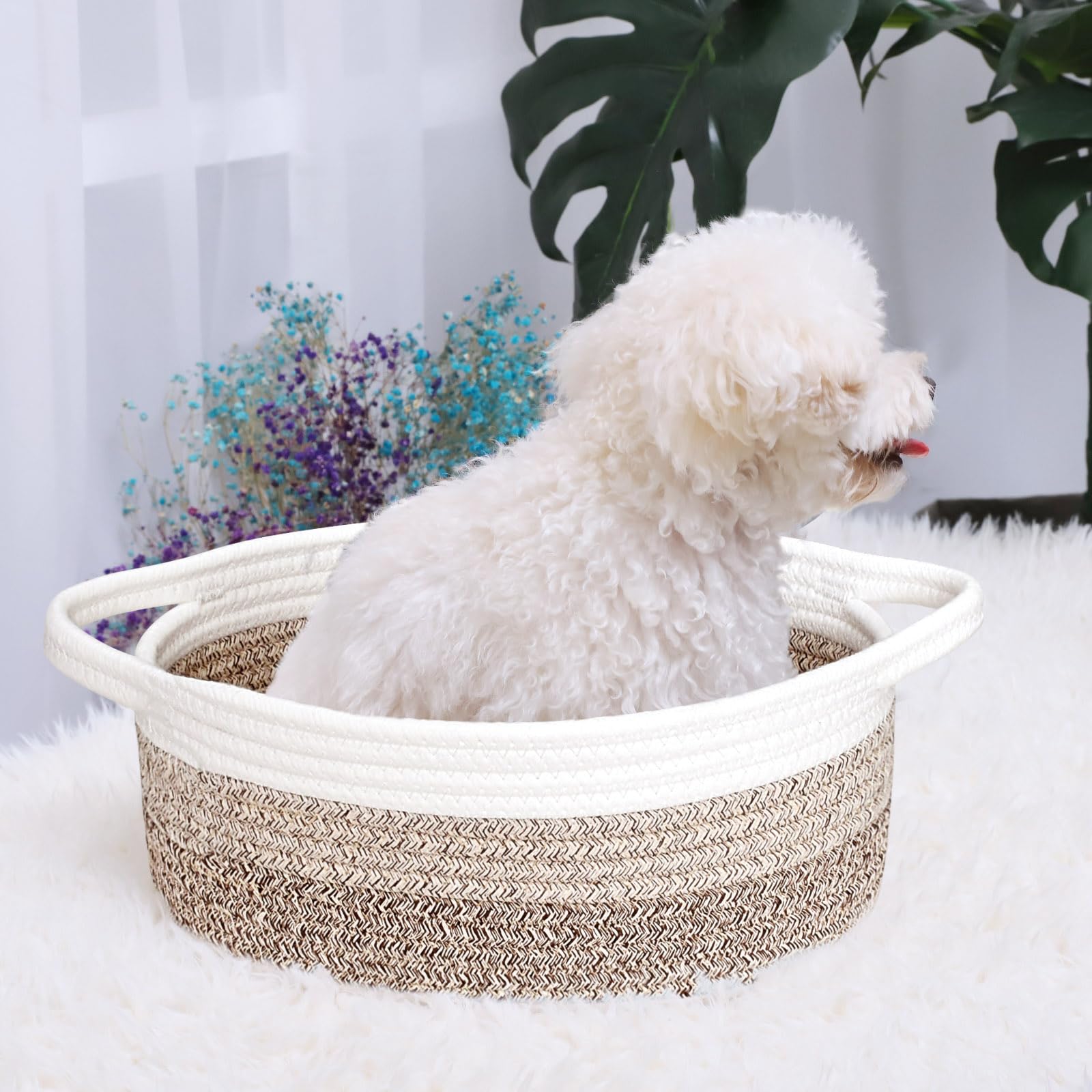 Small baskets for organizing, keep spa essential, fruits, remote control, towel, diaper, blanket, toy, nursery necessaries, make-ups organized in order. Even can be used as dog cat basket