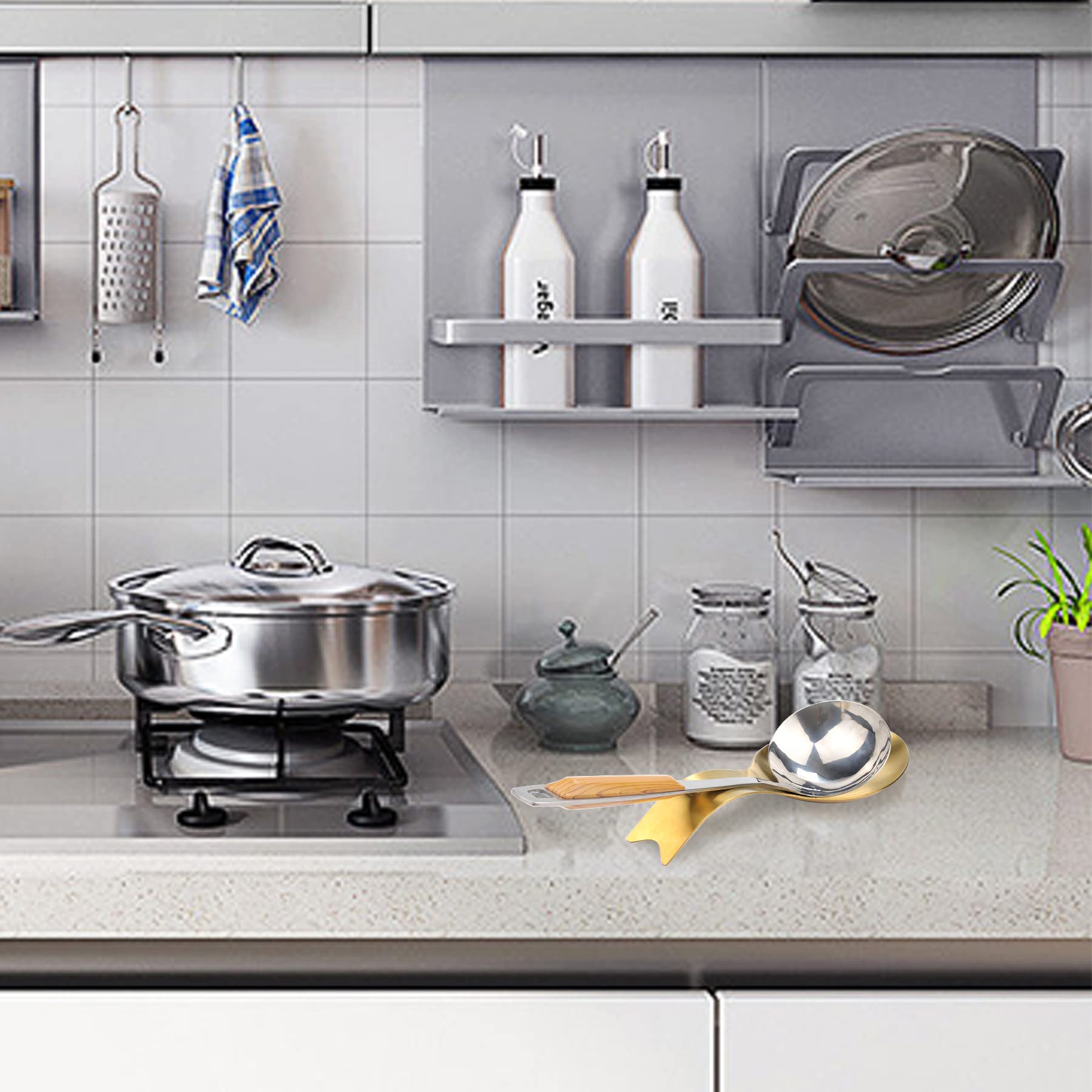 Heavy Duty: Spoon Rest is made from thick high quality 304 stainless steel, the edges are smooth and stylish, matte polish, sturdy and durable for years. Lead-free, Cadmium-free, Phthalate-free, BP#free made sure that the spoon rest is healthy and safe for daily use.