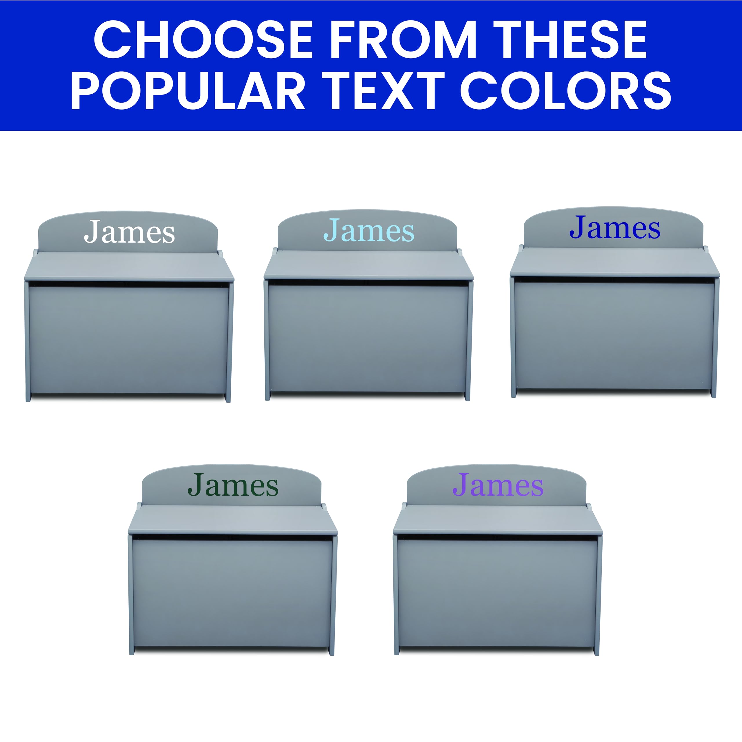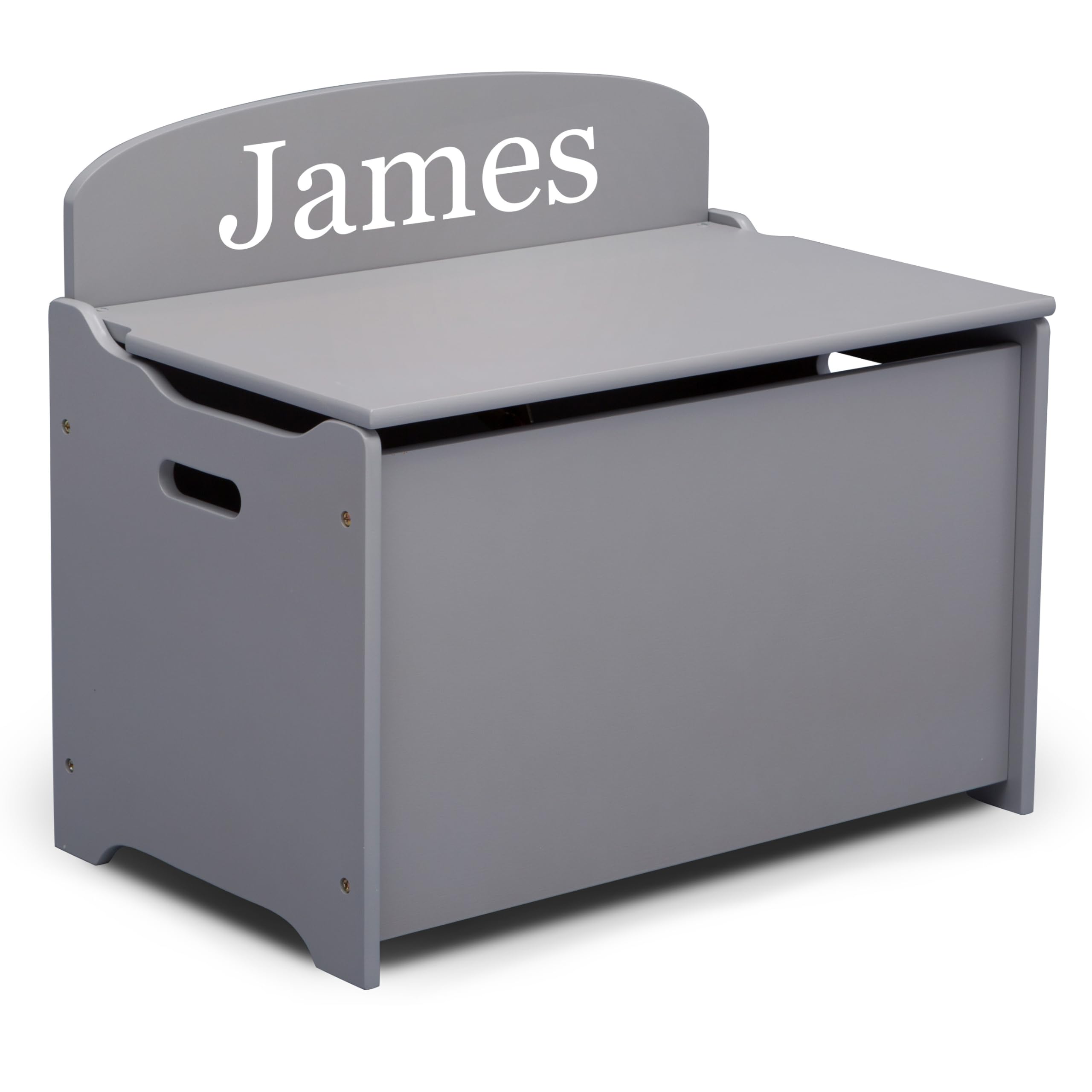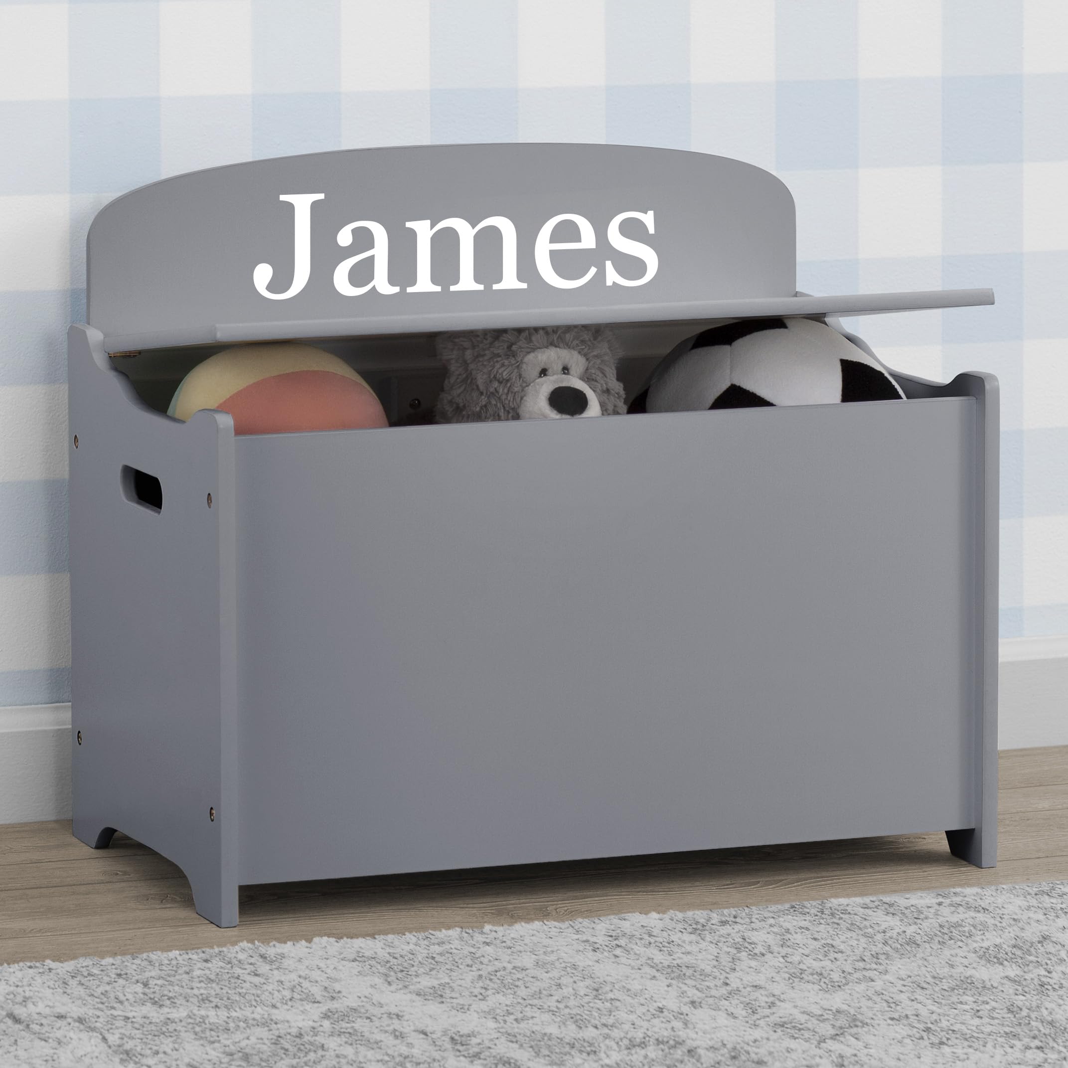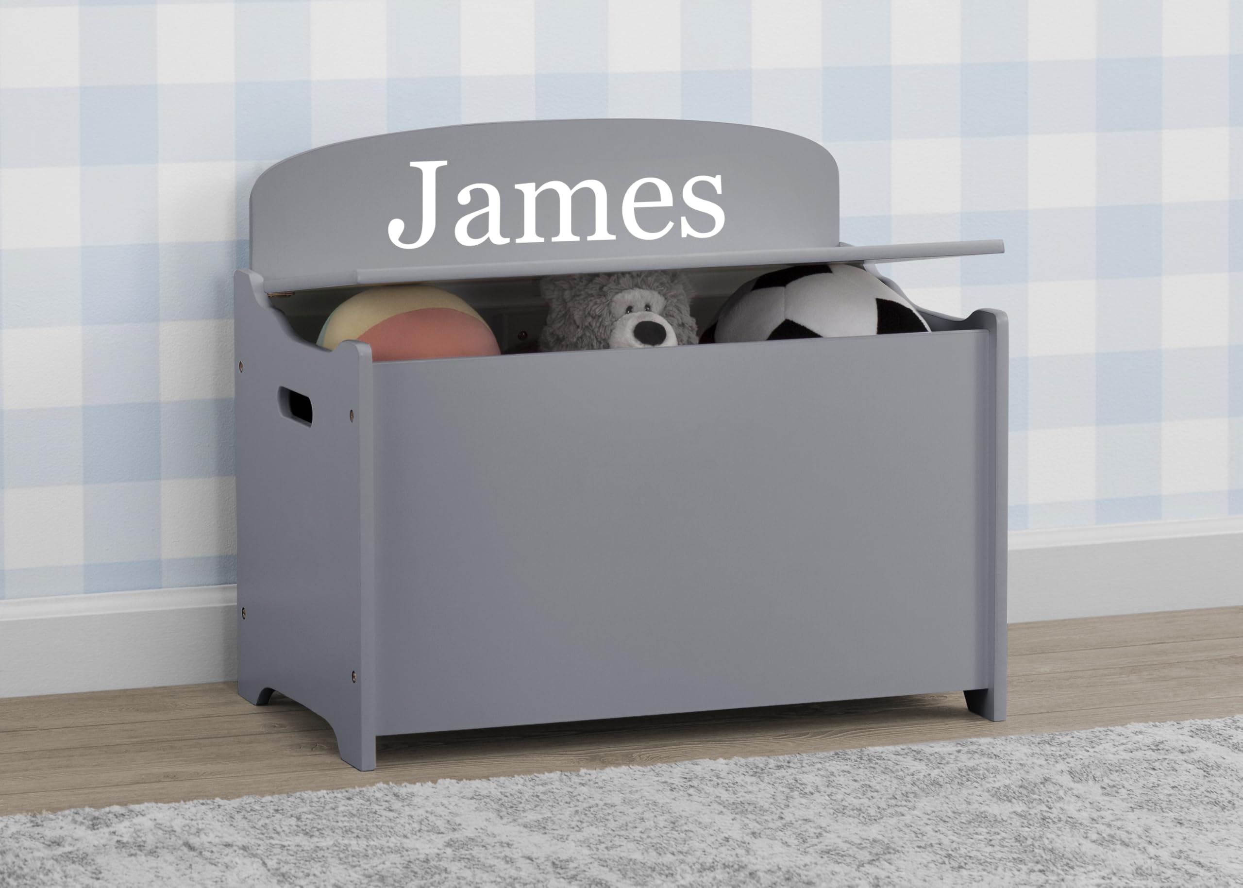The Personalized MySize Deluxe Toy Box by Delta Children is a stylish storage option for the living room, playroom or your child's bedroom. Outfitted with a spacious interior, this toy organizer provides plenty of space to store toys large and small. Cutout handles on either side allow you to easily move the toy box from room to room. Designed with a slow-closing lid to prevent little hands from getting caught, the Delta Children MySize Deluxe Toy Box is a safe choice for your little one. Add your childβs name for an extra-special touch. Personalization is available in variety of font choices and font colors for a more customizable design. Just choose font, color and name, and we will personalize your toy box up to 15 letters max. Toy box available in several beautiful colors. Coordinates with other items in the Delta Children MySize Collection. MYSIZE Trademark Used With Permission. Delta Children was founded around the idea of making safe, high-quality children's furniture affordable for all families. They know there's nothing more important than safety when it comes to your child's space. That's why all Delta Children products are built with long-lasting materials to ensure they stand up to years of jumping and playing. Plus, they are rigorously tested to meet or exceed all industry safety standards.