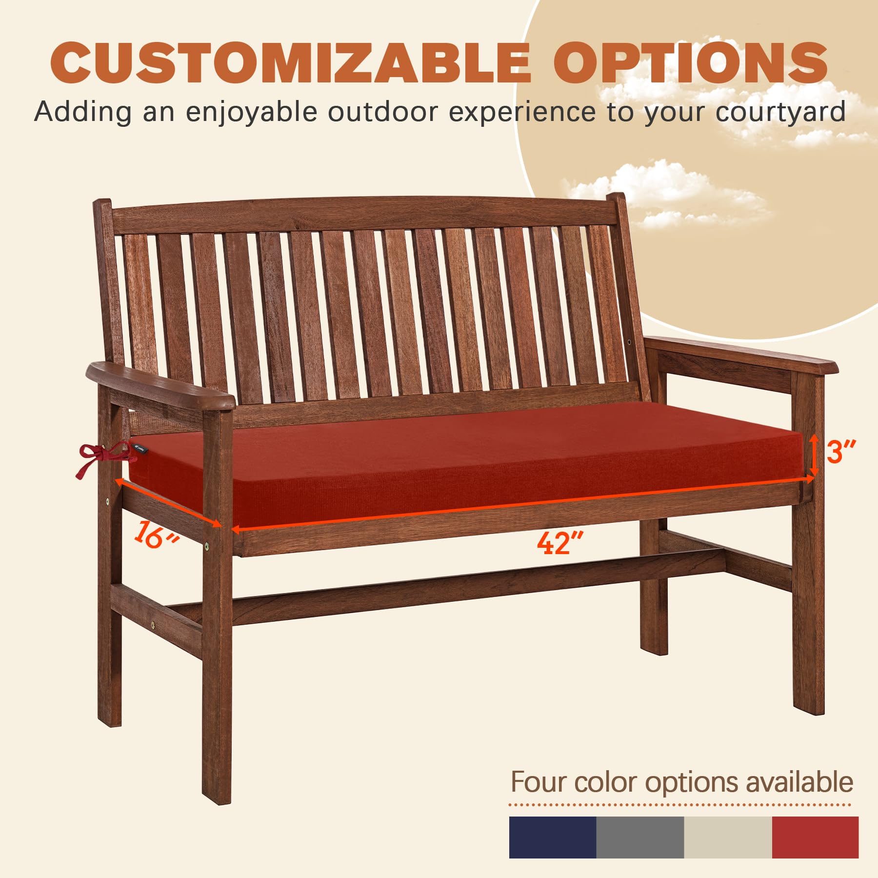 Size Selection: Including 1 bench cushion measuring 42” W x 16” D ( The size description is only for the cushion size, accurately measuring the dimensions of your furniture's seating area in advance, make sure the cushion size fits your furniture ).