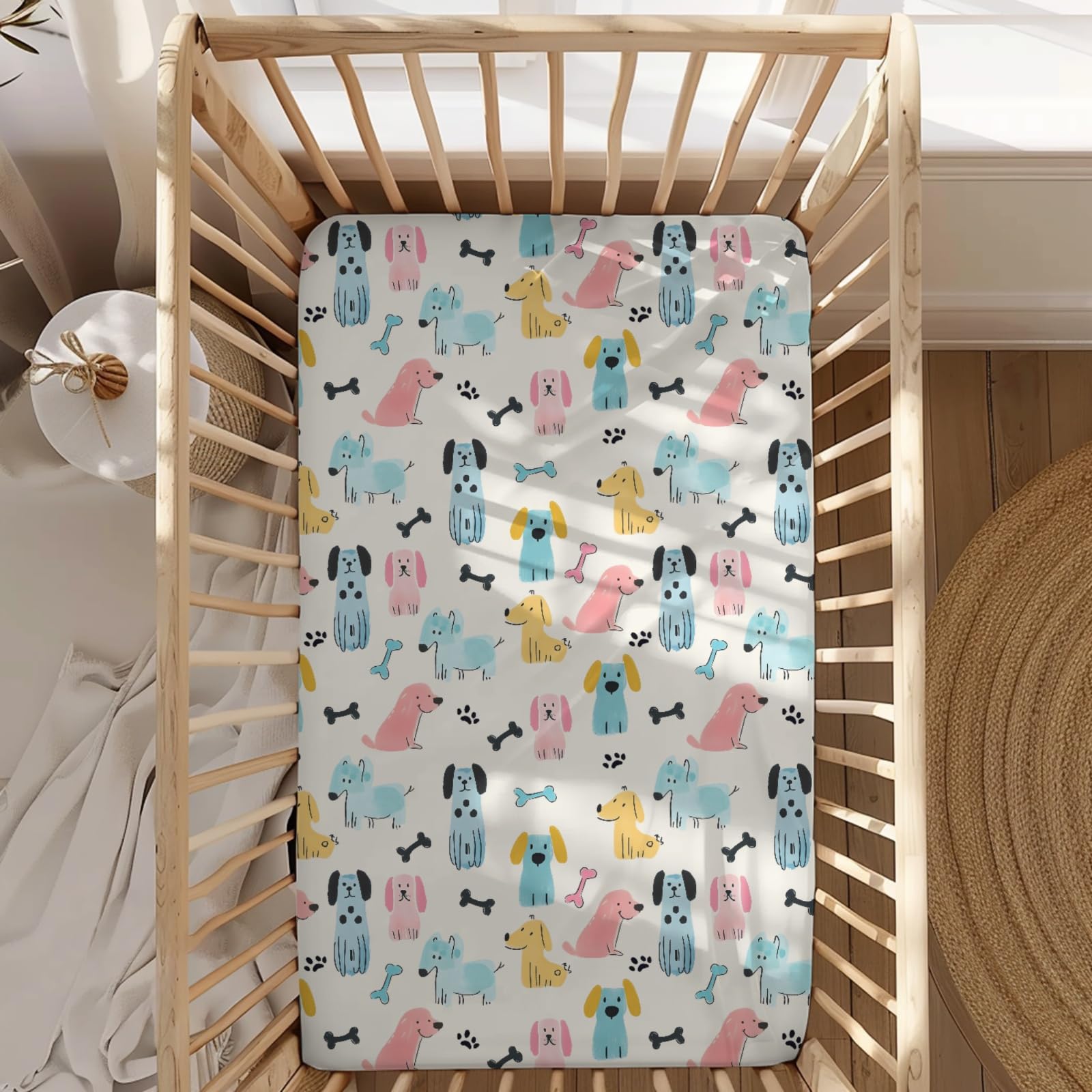 [size]-28x52 inches=71x132 cm [Quality]-Made from soft and breathable polyester materials that are gentle and comfortable to your baby's skin. These sheets offer both quality and comfort, making them suitable for ensuring a peaceful and restful night's sleep for your little one. -Our sheets are designed to withstand regular use and washing without losing their softness or elasticity. You can rely on our crib sheets to offer a comfortable sleeping environment for your baby. -The elastic band ensure a secure and snug fit around the mattress, preventing slipping or shifting during sleep. This ensures that your baby stays cozy throughout the night, giving you peace of mind knowing that they are sleeping soundly. [Stylish Print]-We features a versatile color palette that is suitable for both boys and girls, making it the suitable addition to parents who want to create a welcoming nursery for their little one. With its design, versatile color palette, our print is sure to enhance the decor of your nursery and offer a comfortable and inviting space for your baby. [Gifting]-This baby crib sheet is a must-have item for new parent's baby registry and is a wonderful gift idea for a mom-to-be. It is not only practical but also thoughtful, making it a suitable choice for whoever looking to give a meaningful present or to celebrate the arrival of a new little one. [Easy Clean]-Machine wash or hand wash in cold water on a gentle cycle. Avoid using high heat or bleaching. -Our durable fabric maintains its shape and softness even after multiple washes. [Customer Service]-Our team is here to assist you at every stage of your journey. Whether you have questions about caring for your baby or are seeking suggestion on the practices for their well-being, we are available to help.