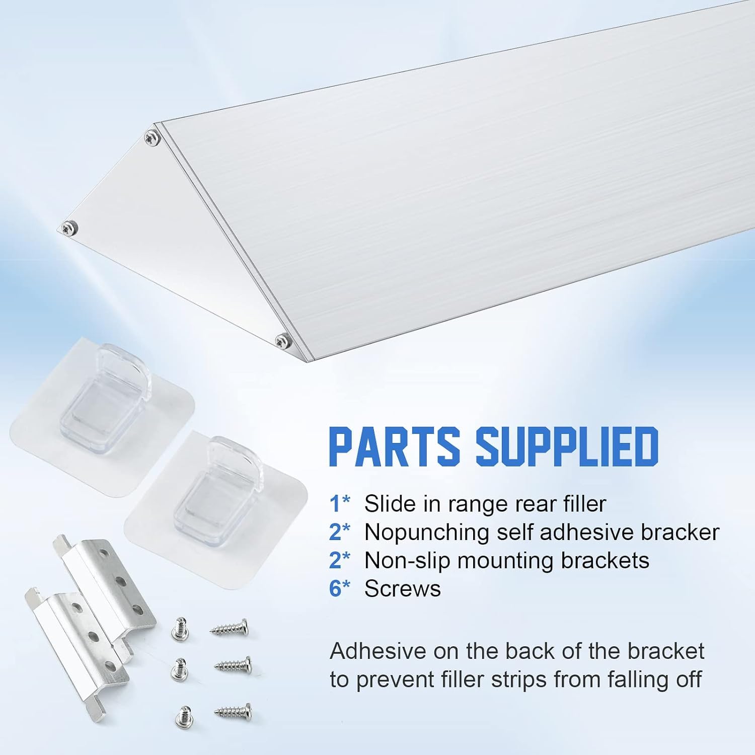 Easy Installation: With the included installation instructions and non slip fixing accessories, you can get a good solution in just a few minutes by following the installation instructions. The slide in range gap rear filler strip is so stable and secure that it will not fall off and does not require any experience in disassembling appliances or repairs
