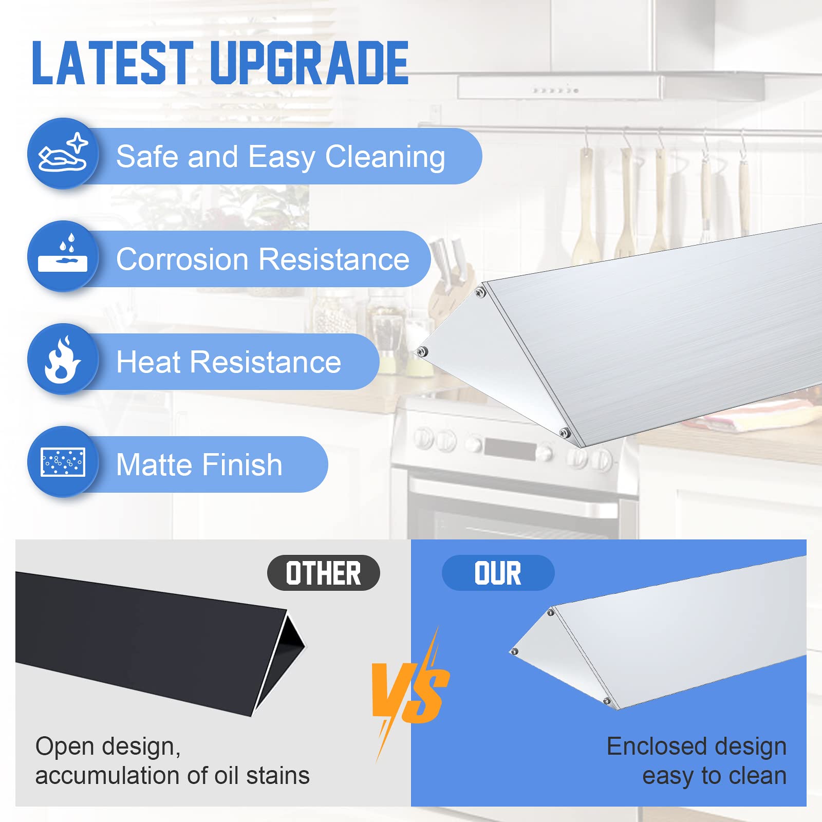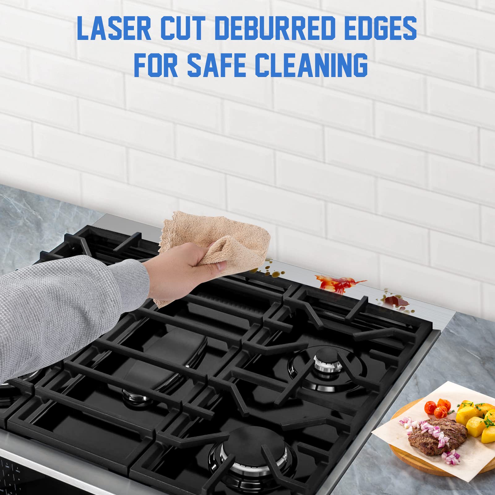 Premium Quality: The stove side gap covers for stove and counter is made of premium quality and aluminum material with surface oxidation treatment, beautiful and waterproof, heat and corrosion resistant. The fully enclosed design of stove gap covers for back wall is easier to clean, making the kitchen neater and more comfortable to cook