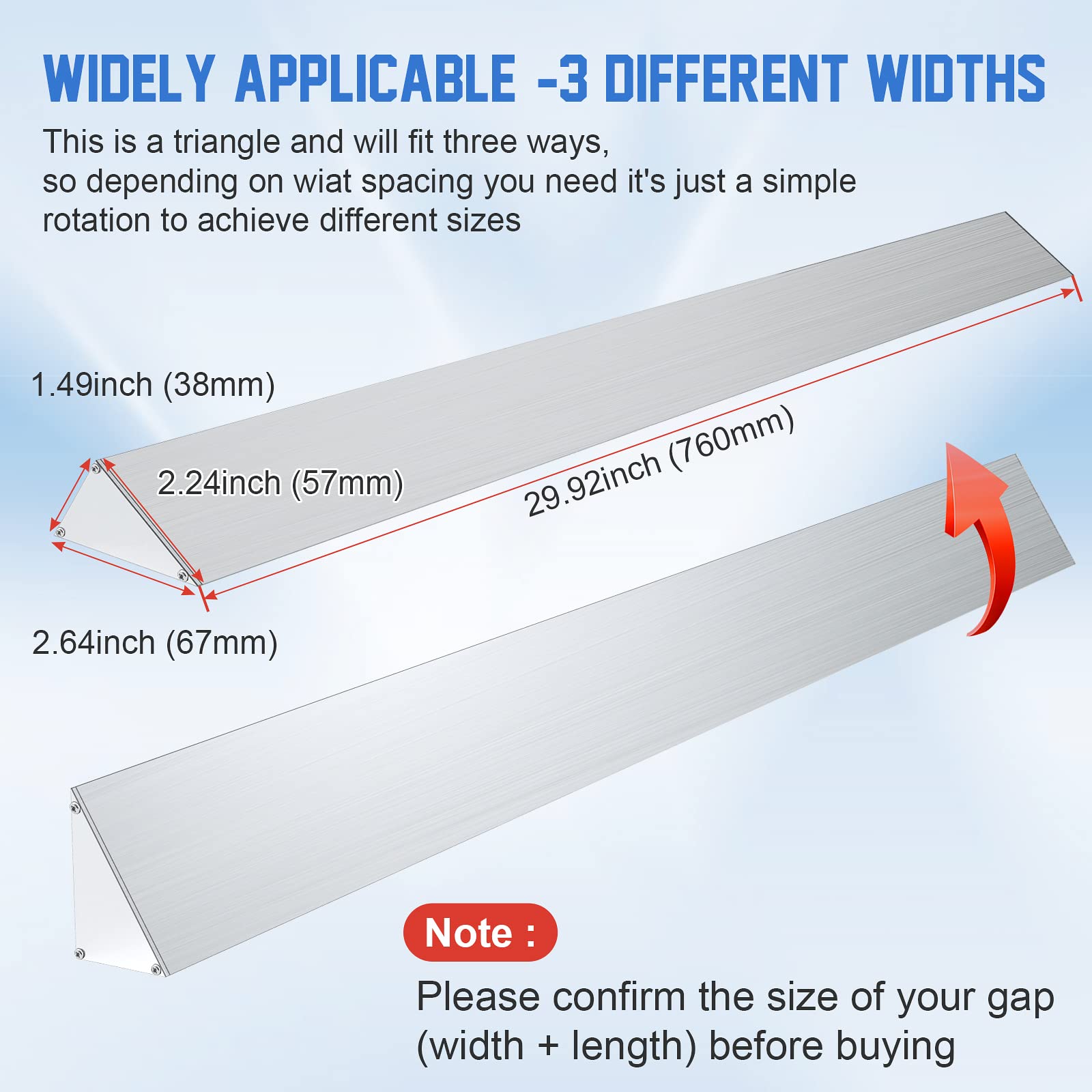 Widely Practicability: This universal triangle shape range gap filler trim kit is made up of three different width (1.49''/2.24''/2.64''), depending on the width of the gap, you can choose the right surface. Any gap width less than 2.7 inch and length 30 inch can be installed. Gives you more flexibility in filling gaps