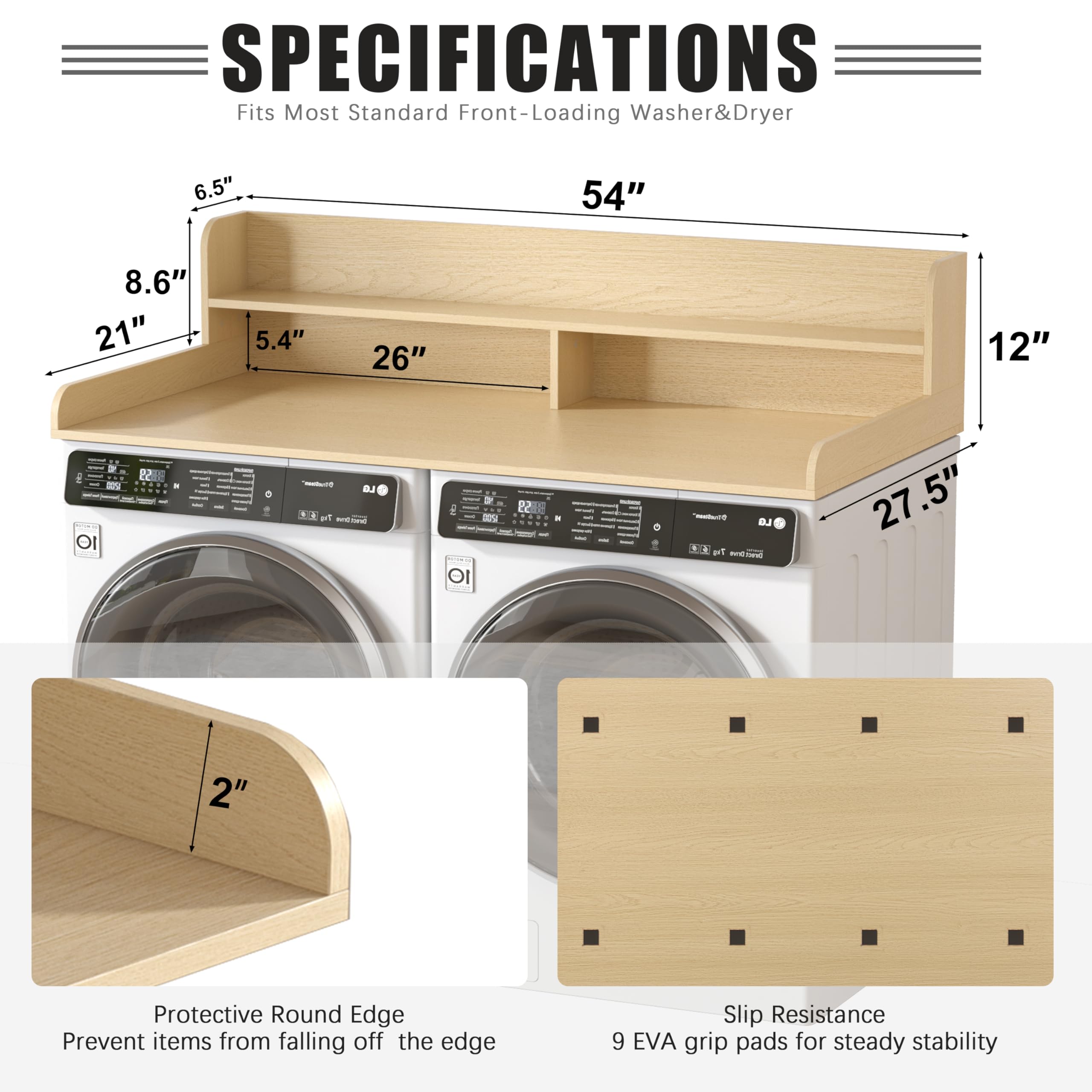 【Easy to Install】The products have been strictly tested before leaving the factory.The detailed installation guide for the laundry countertop included with the product explains the steps in clear steps. Even first-time users can easily complete each step by following the guide to ensure a smooth and error-free installation process. The product is equipped with 12 rubber stickers with anti-slip function to ensure that the washer dryer countertop is stably fixed on the laundry countertop.