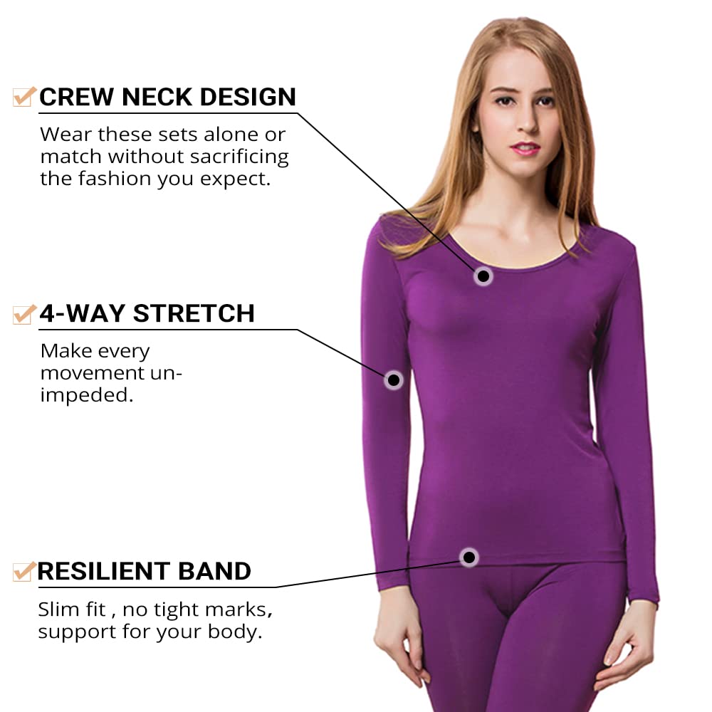 🍀TOP & BOTTOM🍀 Womens winter thermal underwear is super warm and soft on the inside and thins enough to fit under your shirt comfortably. This thermal set definitely can be wore as an outdoor compression sports shirt