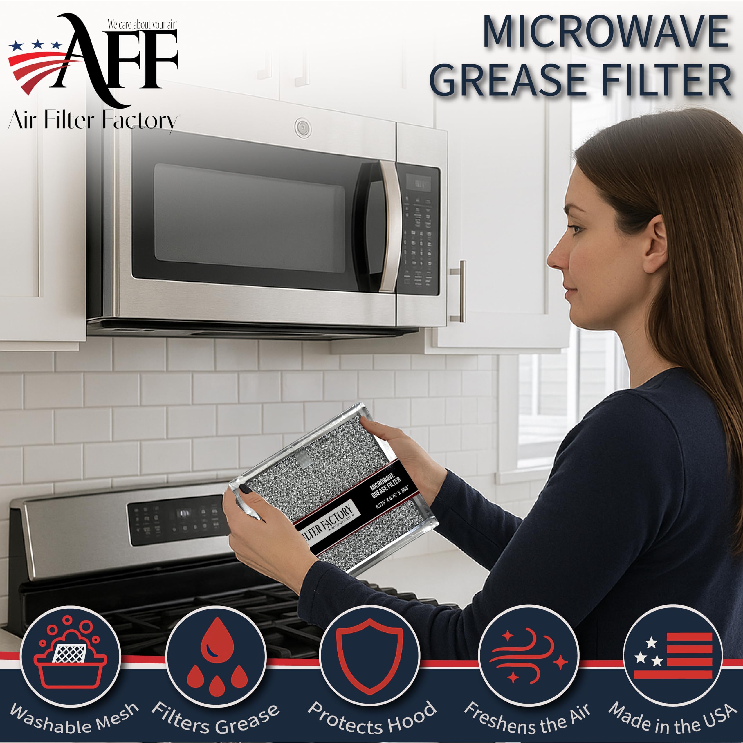 HIGH-QUALITY MATERIAL: The Microwave Filter Replacement Is Proudly Made in the USA From Durable Domestic Aluminum, Our 12-Layer Grease Filter Effectively Captures Grease And Food Particles, Keeping Your Microwave Clean And Functioning Efficiently.