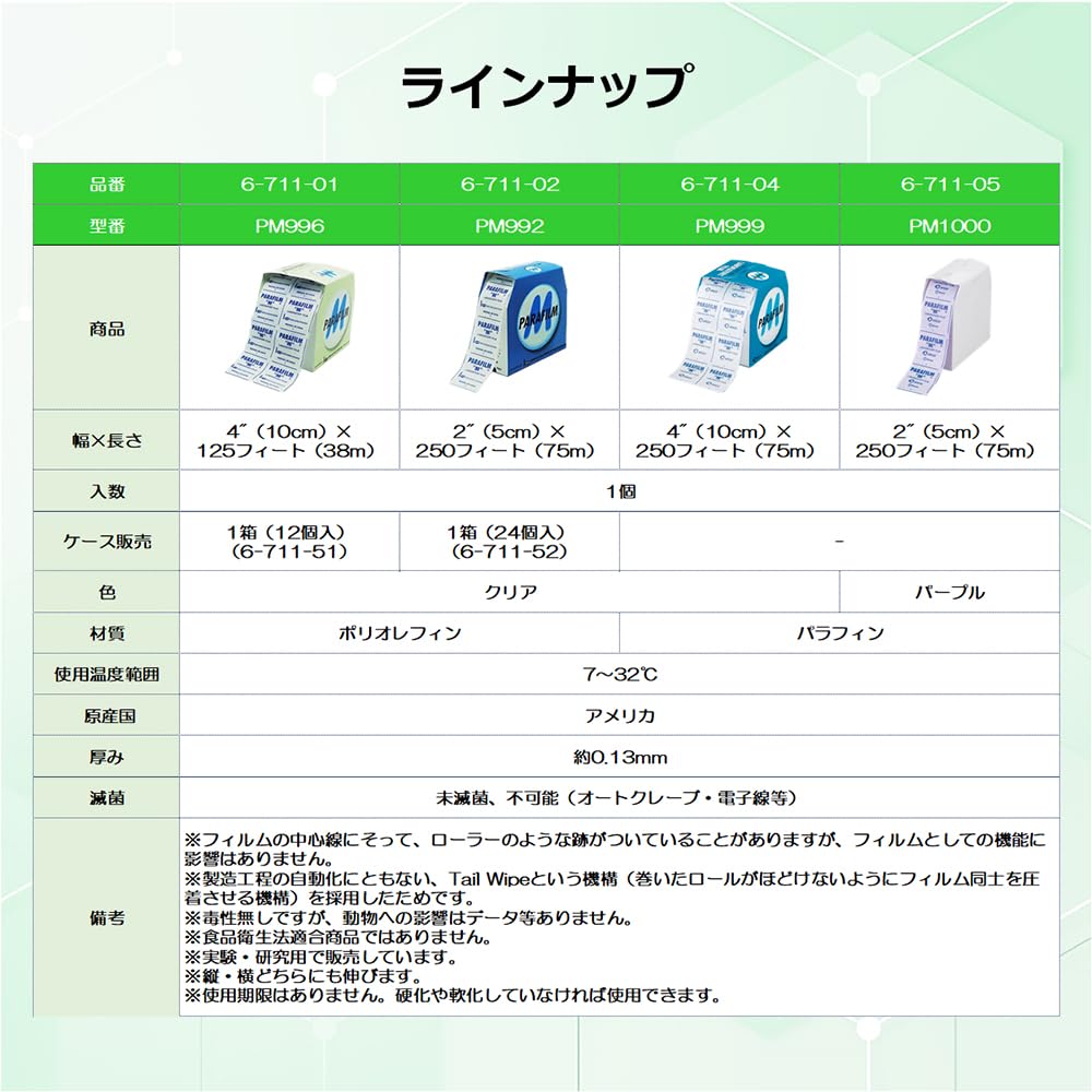 Protect the integrity of your laboratory and research applications by keeping moisture loss to a minimum and shield the contents of your items with a flexible covering and overwrap. Β» Prevents moisture and volume loss due to material composition and seal strength Reduce the risk of tampered data Allows for off-gassing while still creating a tight moisture-barrier Odorless, colorless and semi-transparentΒ» Self-sealing and pliability allows Parafilm M to cling around irregular shapes and surfaces Permeability to oxygen, carbon dioxide and water vapor Ideal covering for test tubes, beakers, petri dishes, flasks and more Overwrap to further secure stoppers, lids and capsΒ» Stretches to more than 200% of its original length.