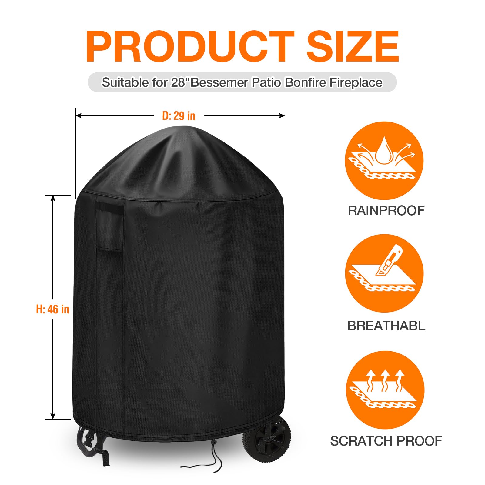 Fit up to 28” Round Fire Column- POMER patio bonfire fireplace cover fits round fire pits up to 28"D, cover is 46” high. Design for 28" 22" Bessemer Patio Bonfire Fireplace. Also fits fire pits such as 27 inch, 26inch.