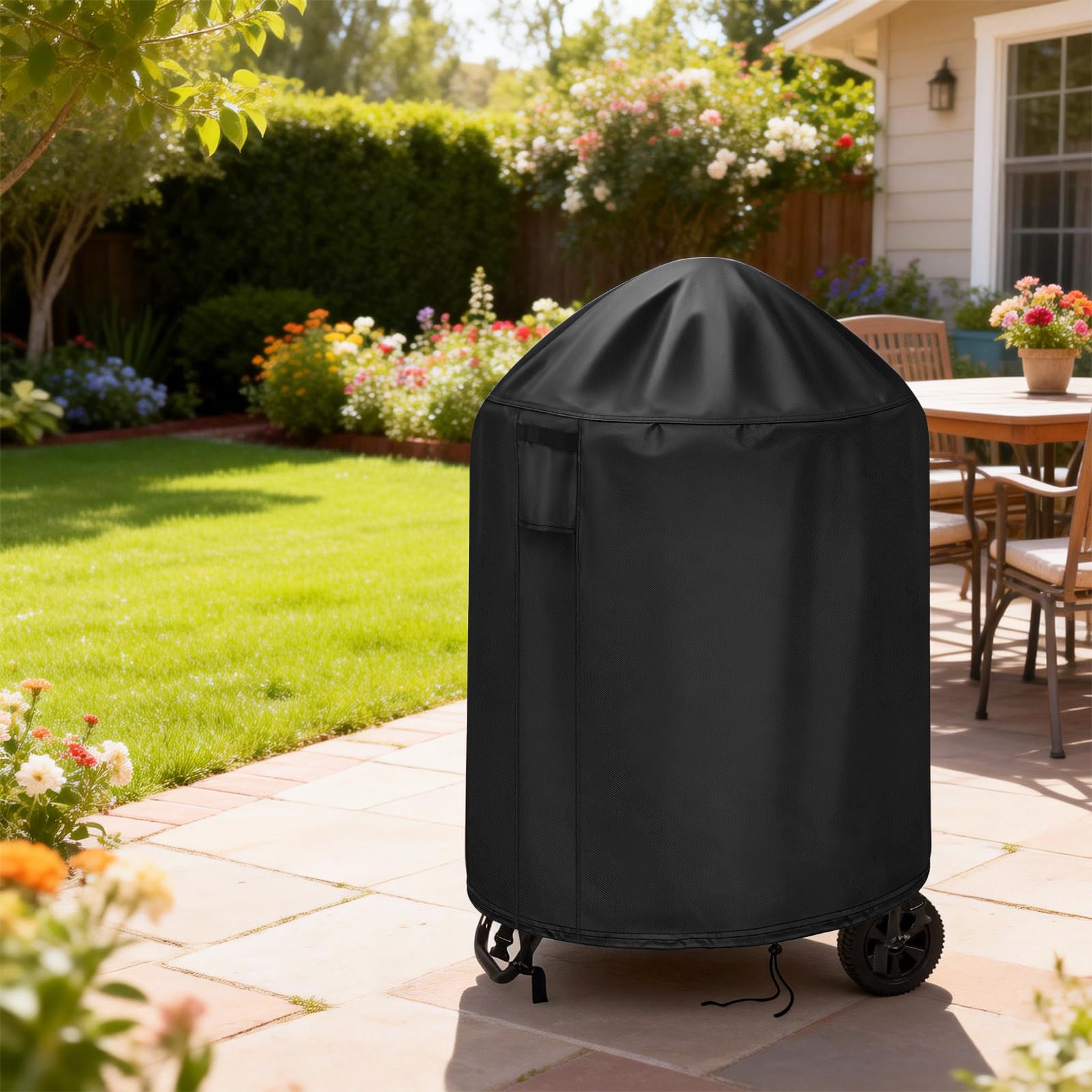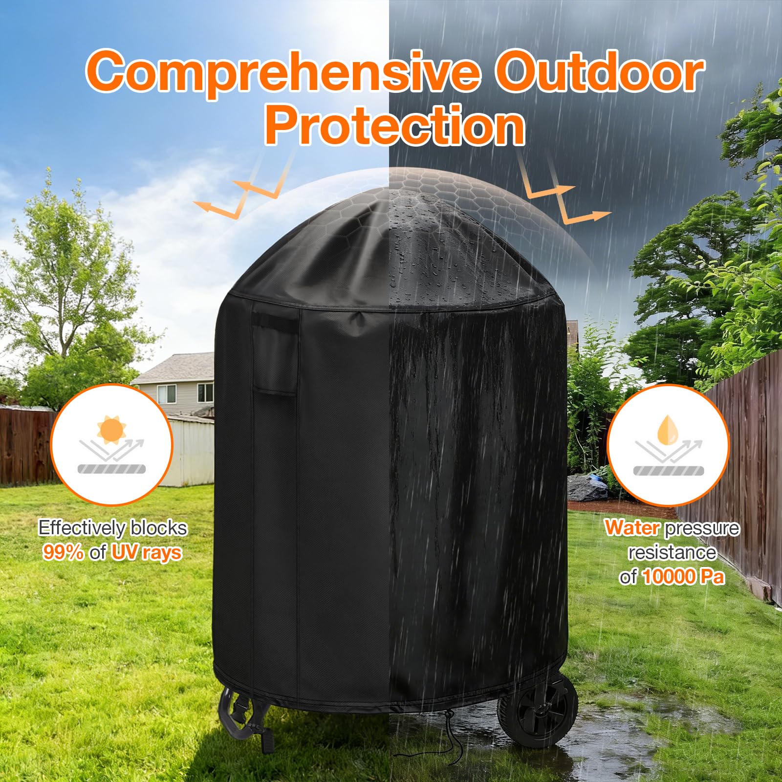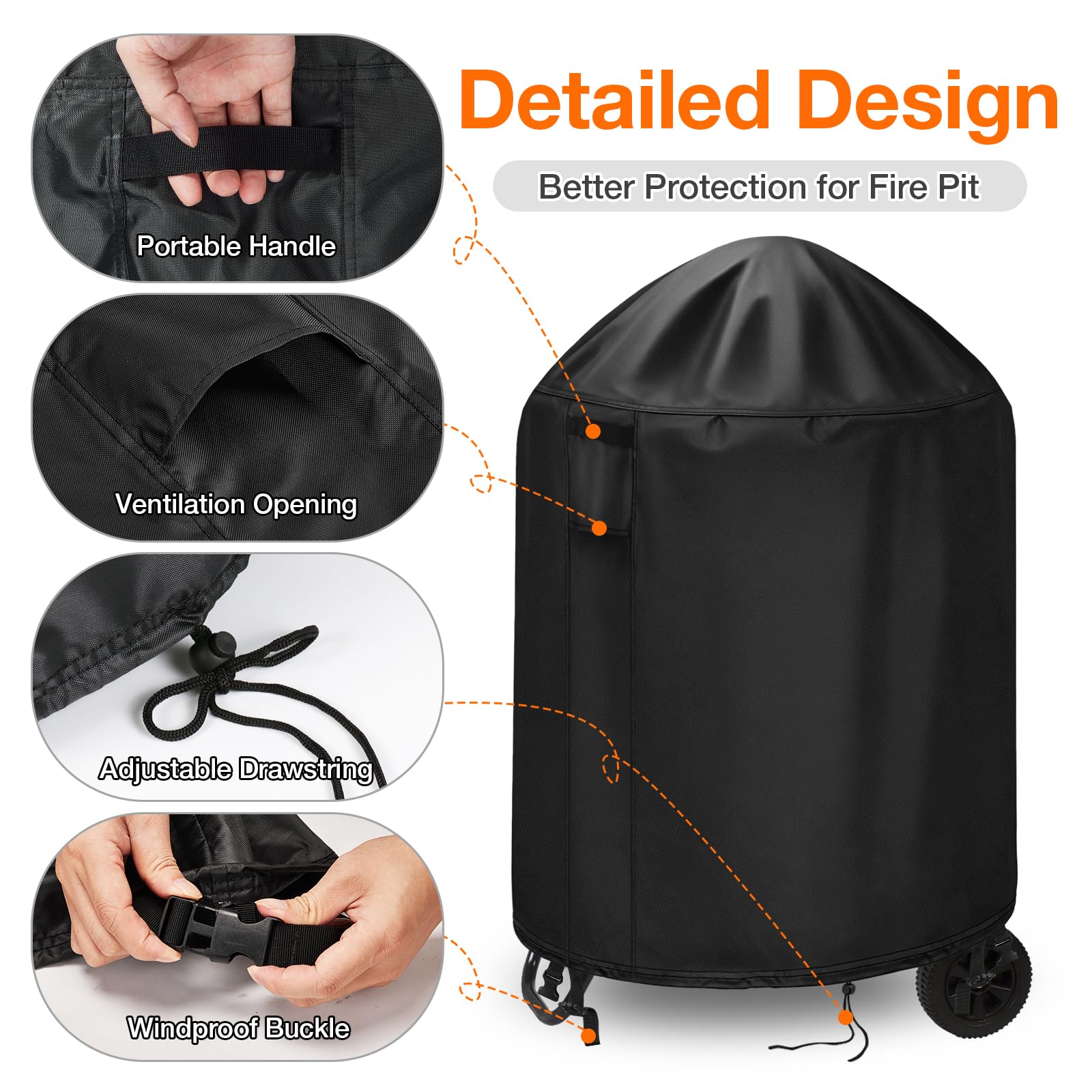Double Windproof Design- 2 built-in buckle straps on diagonal sides to lock around the fire pit legs, and adjustable draw-string tightens easily resulting provide a customizable fit with exceptional security in the windiest conditions.
