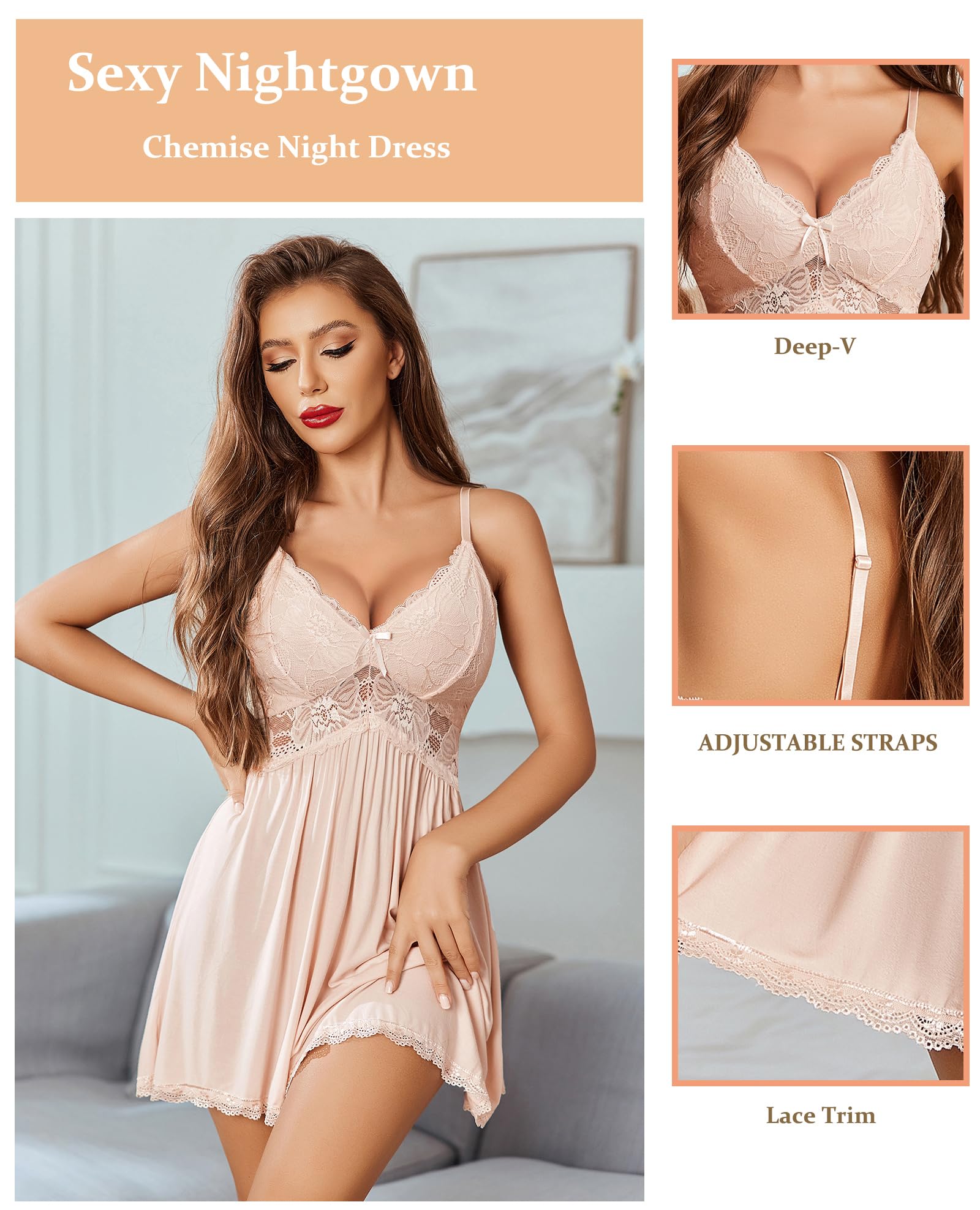 Soft Lace Modal fabric: babydoll nightgown made of 50% Polyester and 50% Acrylic, super soft comfortable modal sleepwear with decent floral lace detail, no worries scratch the skin you will fall in love with the smooth feeling