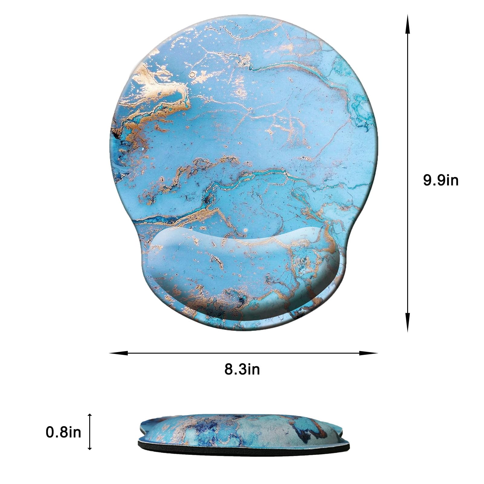ERGONOMIC - Approximately 9.9 in x 8.3 in, 0.8 in thick. The reinforced edges are not easy to deform and damage, no curl up on edges. Ergonomic soft wrist rest mouse pad provide good touch and comfortable support for your wrists. Keep arms, wrists, and hands from getting sore when using computer for long time.