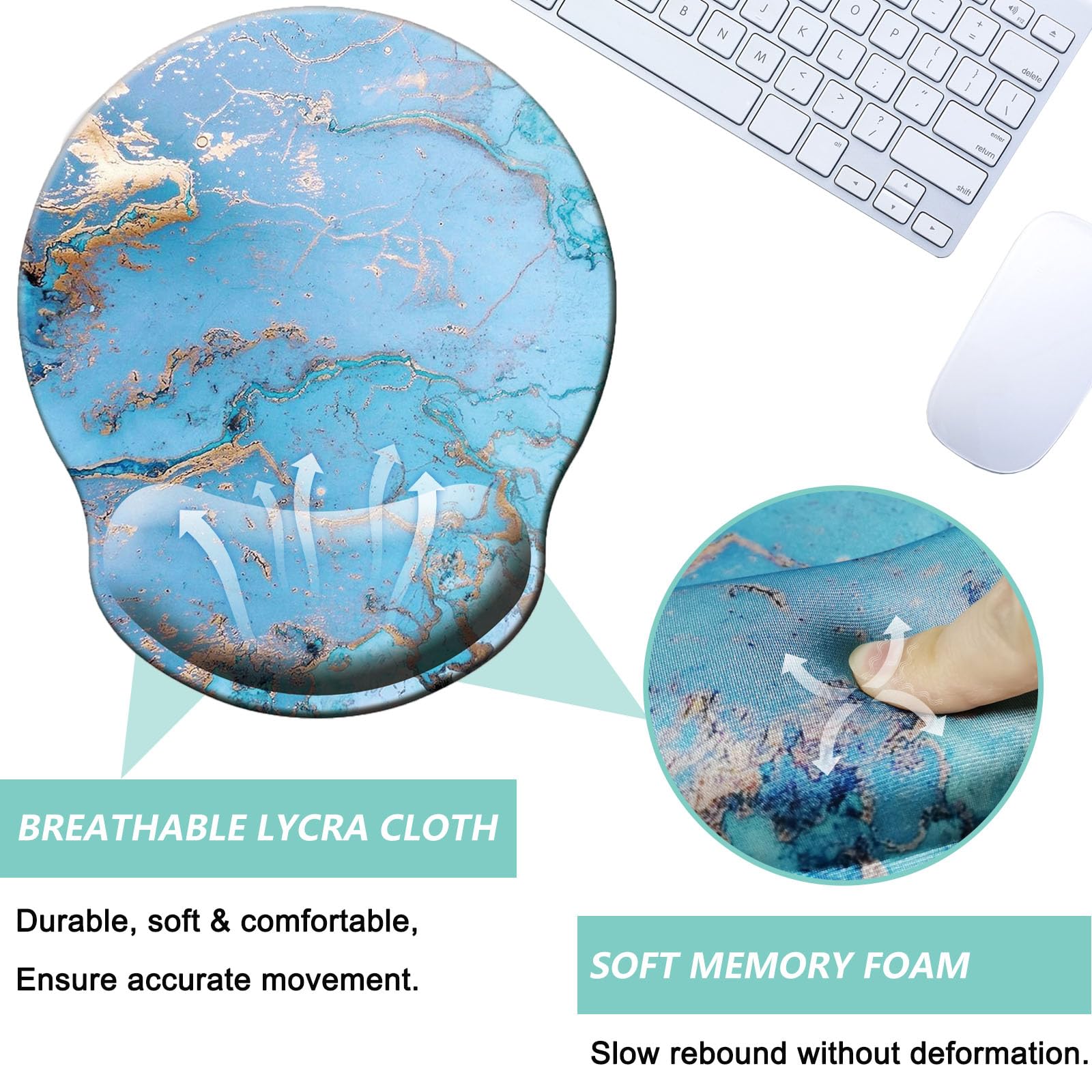 COMFORTABLE - Designed with curved shape wrist rest, filled in memory foam. The soft slow rebound memory foam cushions fit your hands in a natural posture. The smooth surface is made of breathable lycra cloth, ensure accurate precise movement, suitable for all types of mouse, vertical, corded, wireless, mechanical, optical etc.