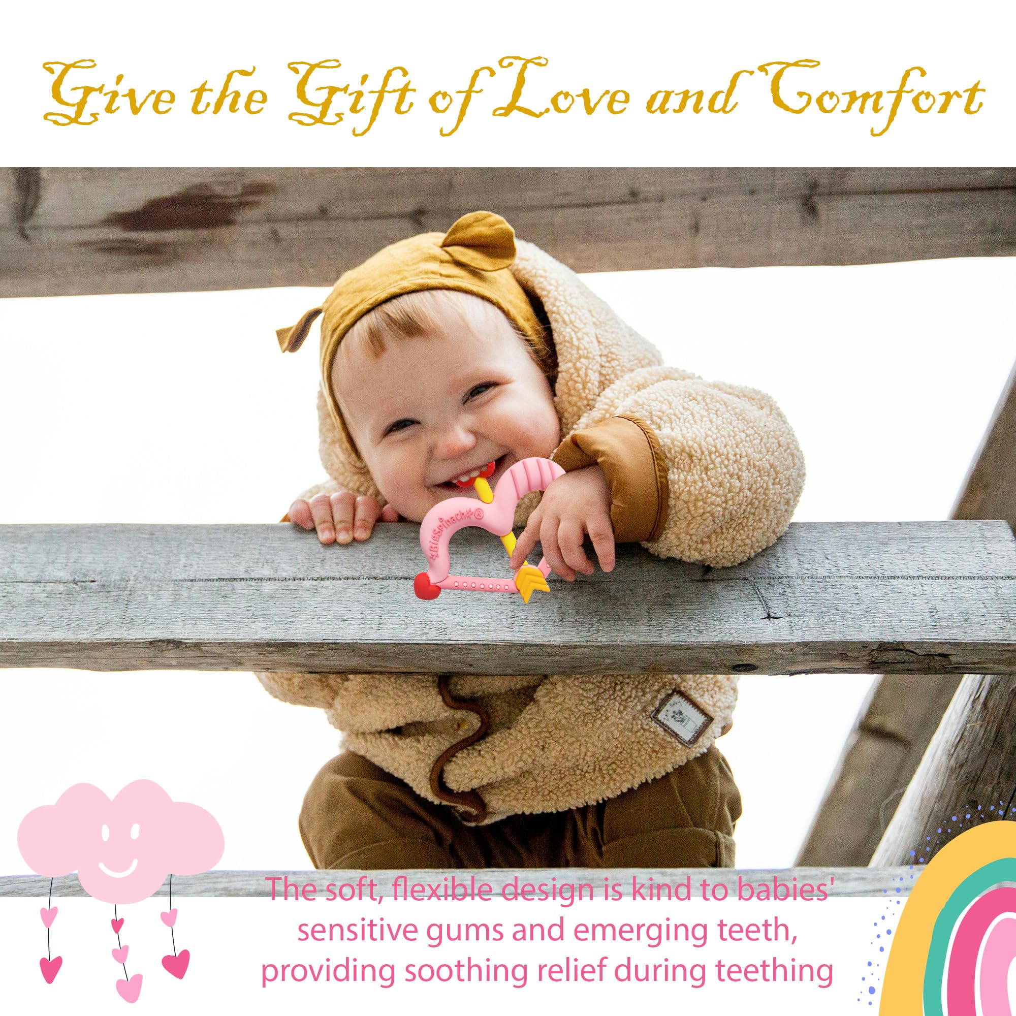 Make this Valentine’s Day extra special – choose the Cupid Bow Mini Soft Teething Toy and let love shine through!