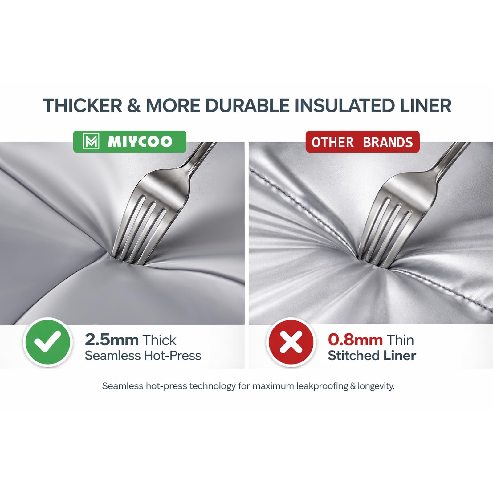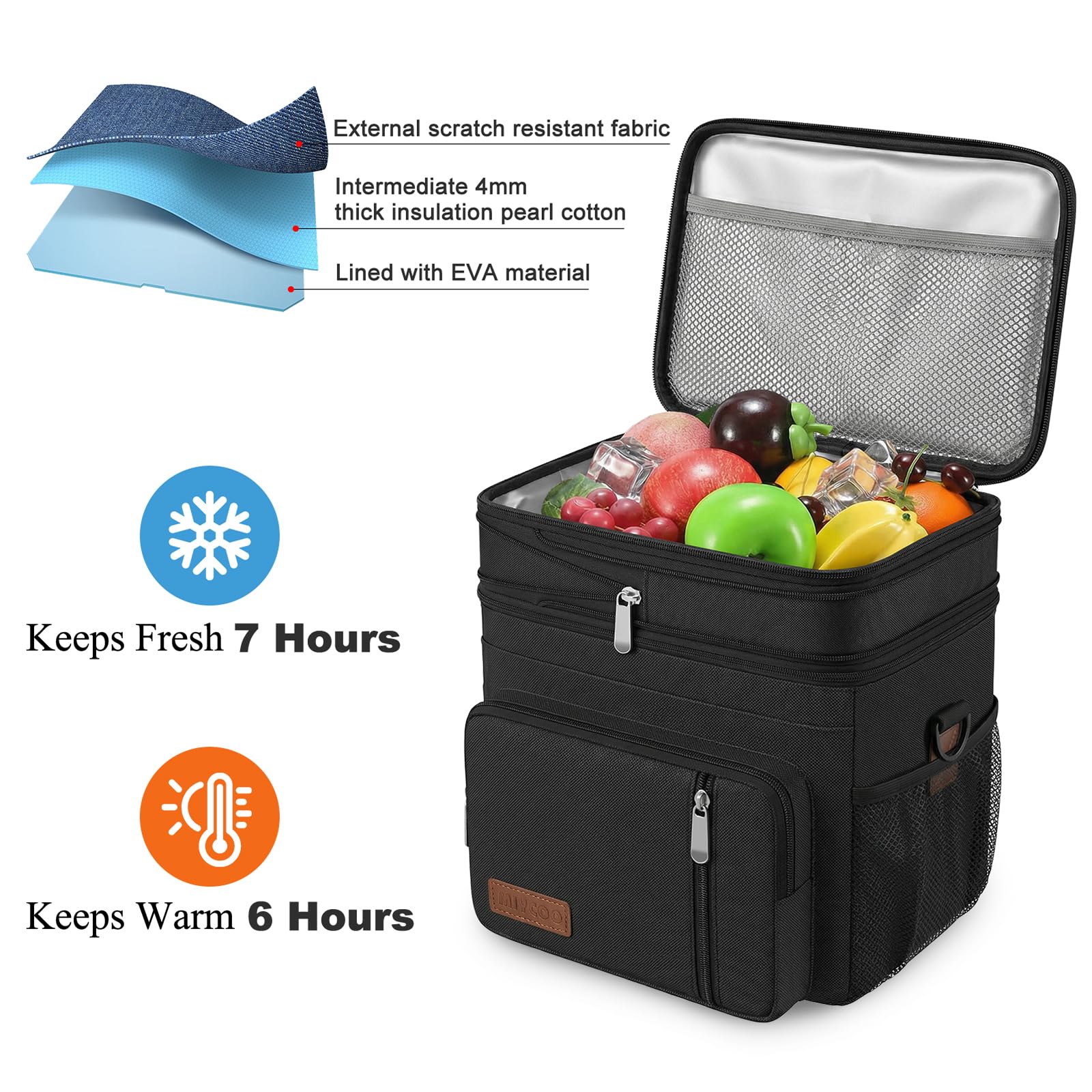 【Leak-Proof & Insulation】Thickened PEVA liner without splicing to prevent leakage. The inner liner is made of thermal insulation material, which can keep the food warm or cold, and can also place ice cubes