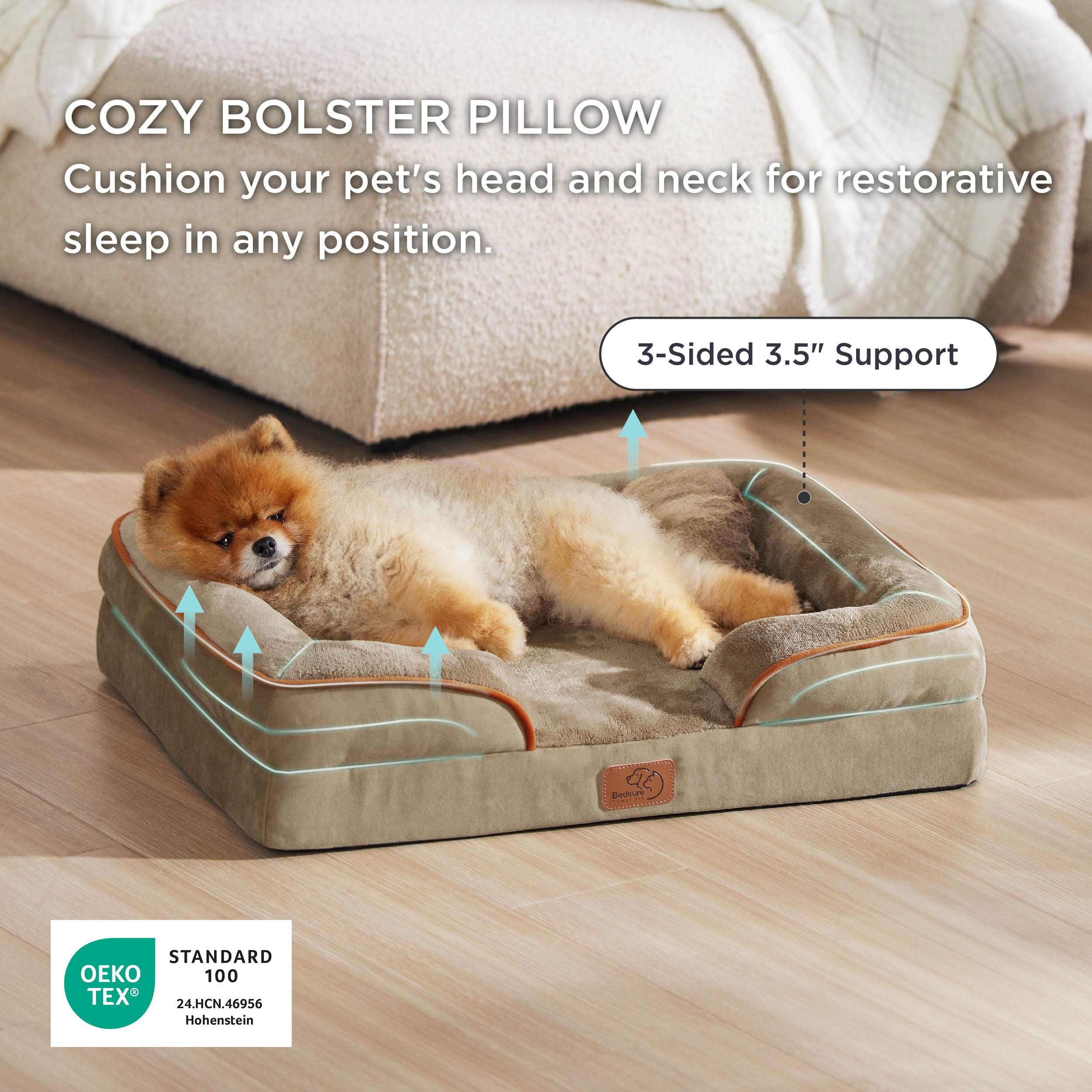 Orthopedic Support: Our orthopedic dog sofa is designed to give your pet unparalleled support for a deep, dreamy sleep. High-density egg-crate foam helps distribute weight evenly and provides the perfect amount of pressure relief and joint support.