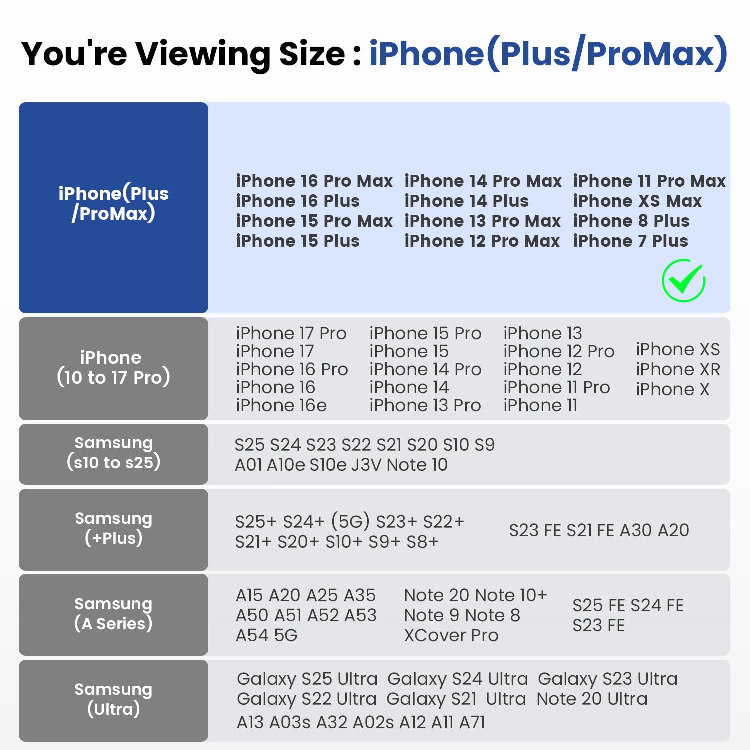 DeBin iPhone (Plus/Max) size fits iphone 16 plus, 16 pro max, 15 plus, 15 pro max, 14 plus, 14 pro max, 13 pro max, 12 pro max, 11 pro max, Xs max, 8 plus, 7 Plus.