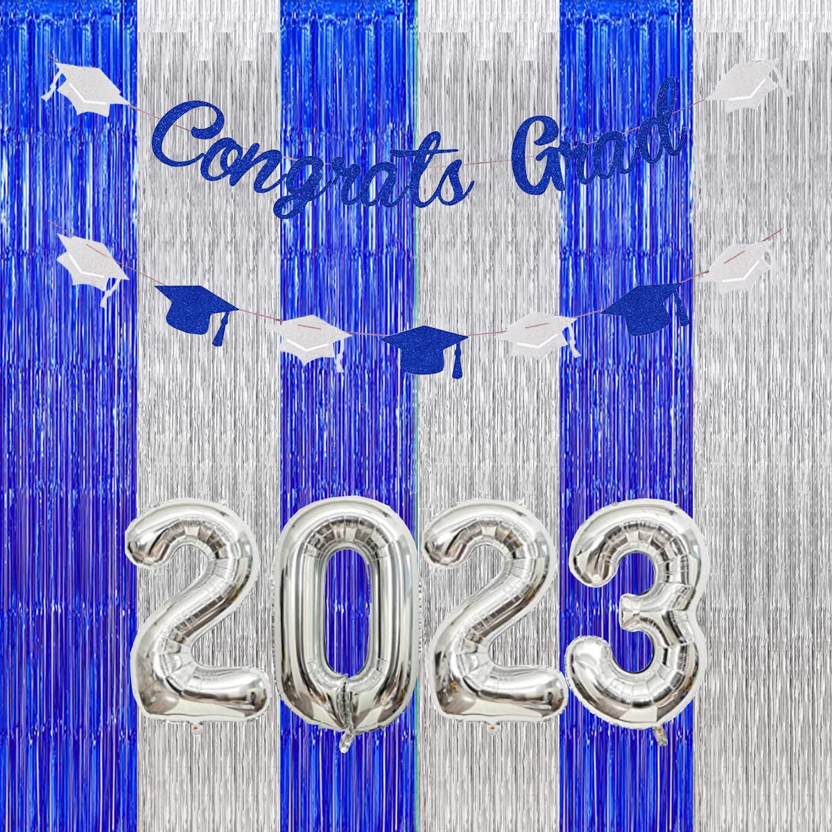 2025 Graduation Backdrop Curtain, Blue Silver Party Decorations Metallic Tinsel Foil Fringe Curtains Asonlye blue white party backdrop will make your party full of enthusiasm and surprise! Get creative with the party essential.The blue and silver foil fringe curtain as a complement to a holiday party and birthday party of your own desig. Fashion blue silver party backdrop decorations includes: - 3Pcs Blue Silver Fringe Curtain ( 3.28 x 6.56 ft ) How to make tinsel curtain: 1. The fringe curtain come with a nice adhesive strip on the top of back which makes it easy to hang and take down! This shiny foil curtain backdrop works well hung in a doorway or hang a few of them side-by-side on your wall to create a shimmering streamer curtain. 2. After the celebration, you can kept them up add to party corner area. Tip: We recommend not opening package until you are ready to put up.