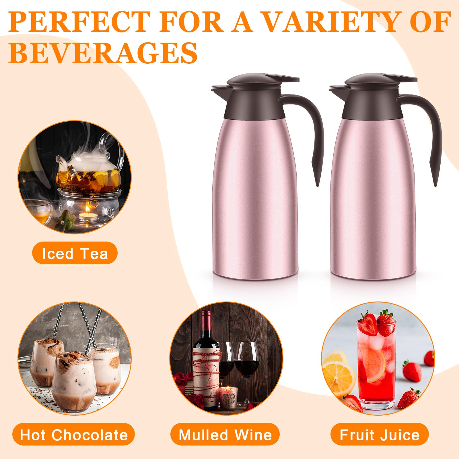 What You Receive: the package will provide you with 2 pieces of stainless steel insulated carafe and 2 pieces of cleaning brushes, which are convenient for your daily use and replacement and cleaning needs, and can bring you enjoyable use experiences