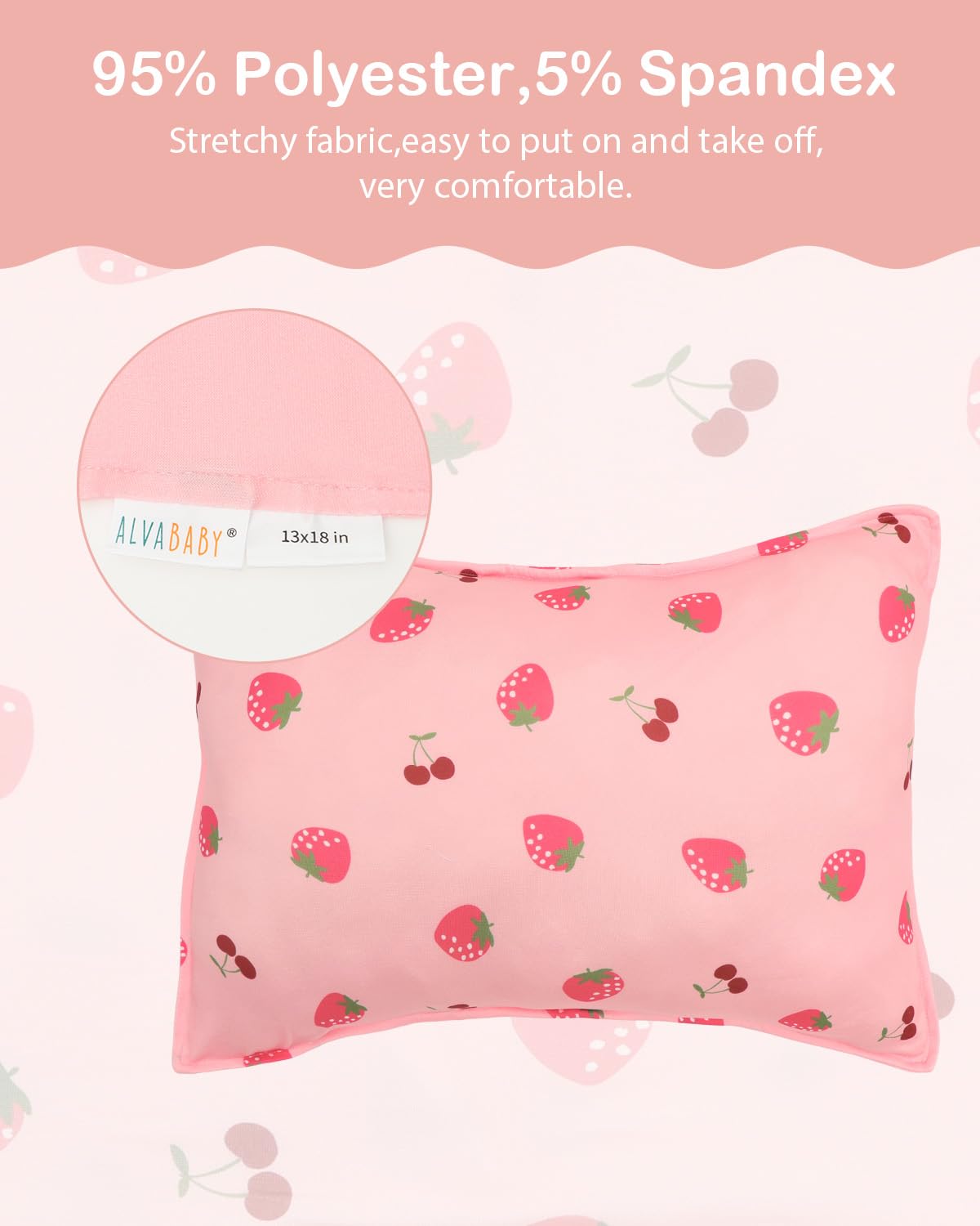 Soft&Breathable Fabric-ALVABABY stretchy toddler pillow covers are made of 95% polyester and 5% spandex.Pillowcases are breathable,gentle,lightweight and safe for kid's sensitive skin.pillow covers are softness for touching.