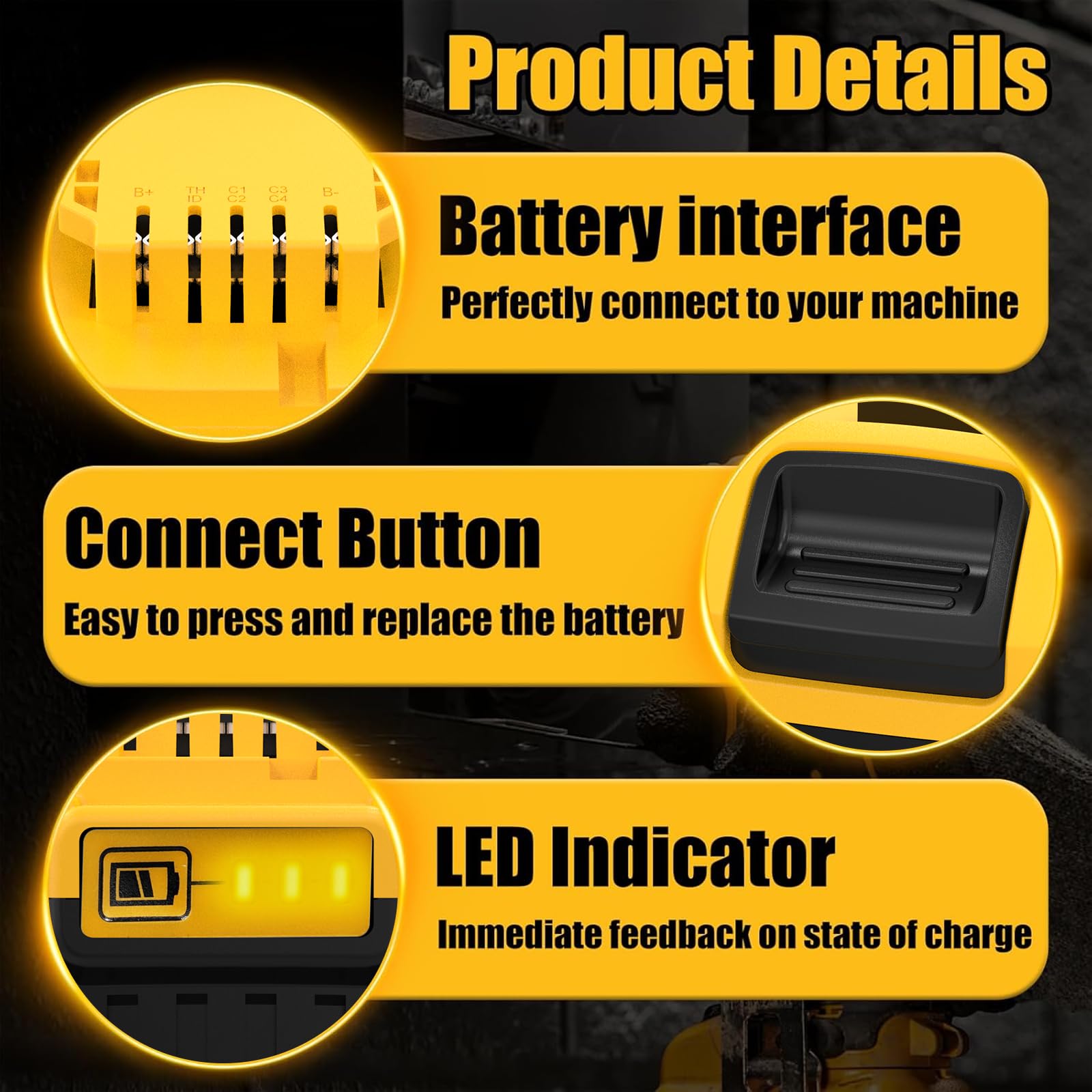 【Wide Compatibility】Compatible with most for Dewalt 20V cordless tools and chargers. Replacement for models DCB200, DCB201, DCB203, DCB204, DCB205, DCB206, DCB208, DCB209, DCB180, DCB181.
