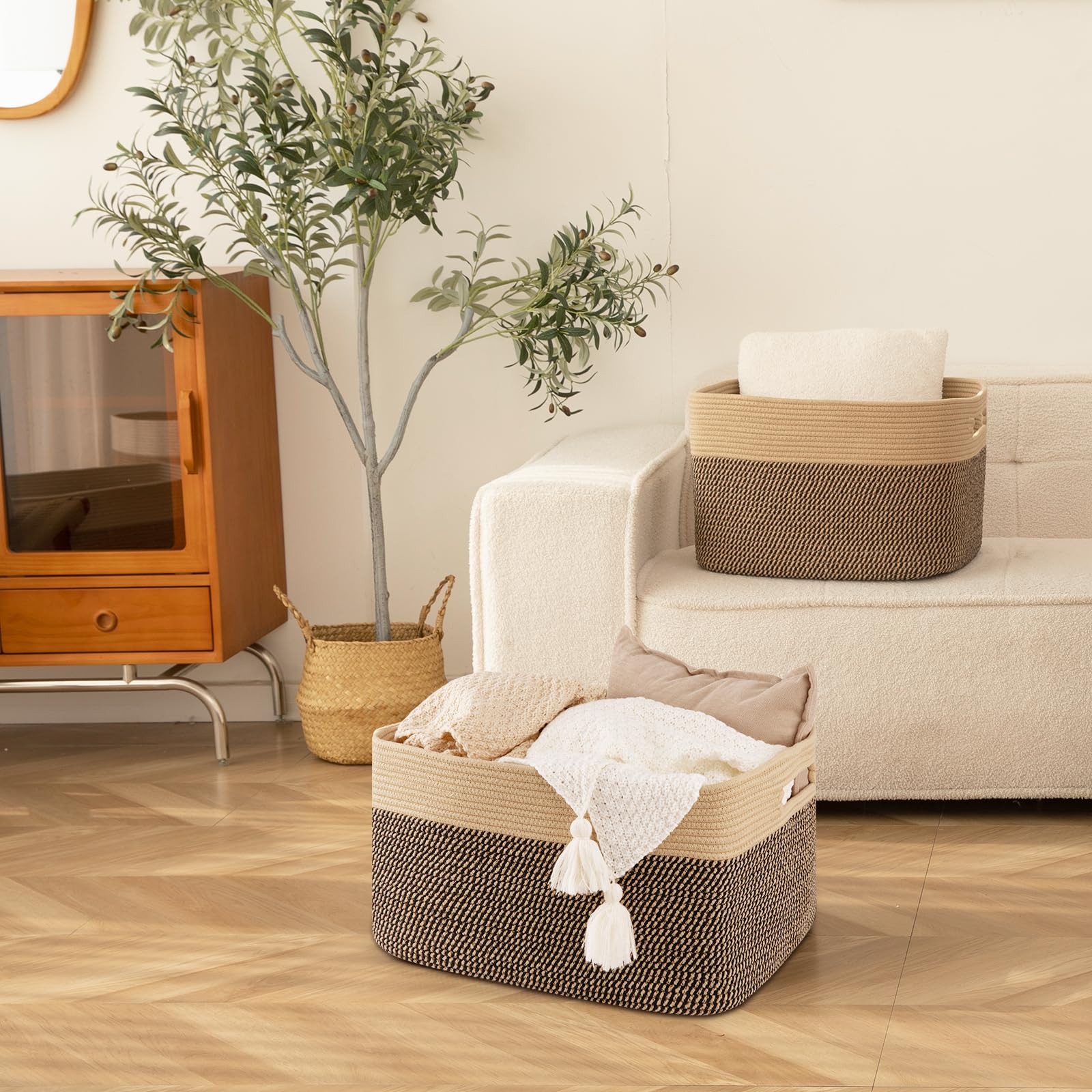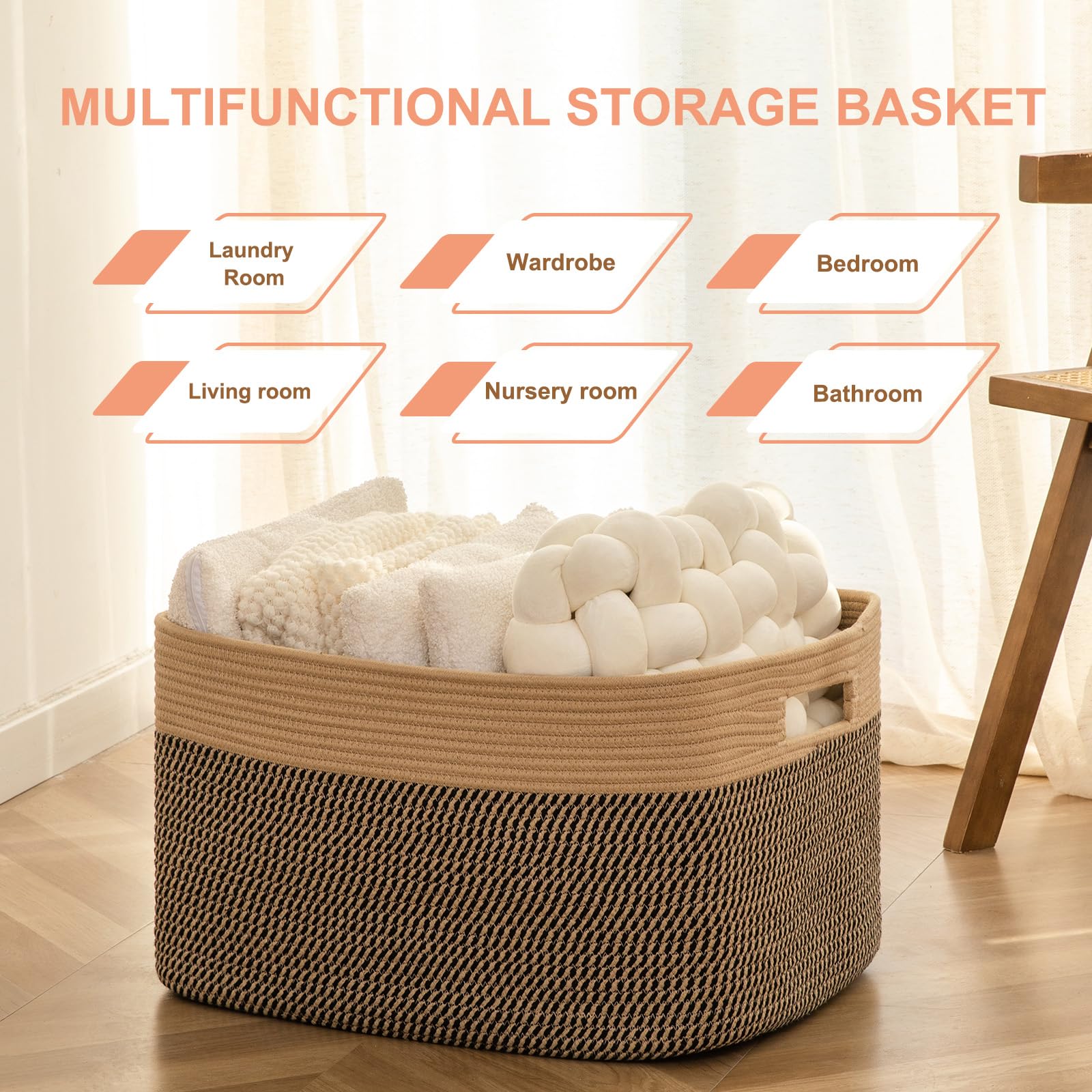 Natural Cotton Rope Basket: Better Material Composition. SIXDOVE woven basket is made from 100% cotton rope, soft and skin-friendly material without chemicals. No plastics and no harsh chemicals. Healthy and safe for babies, kids, and pets